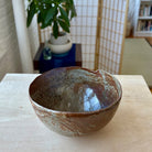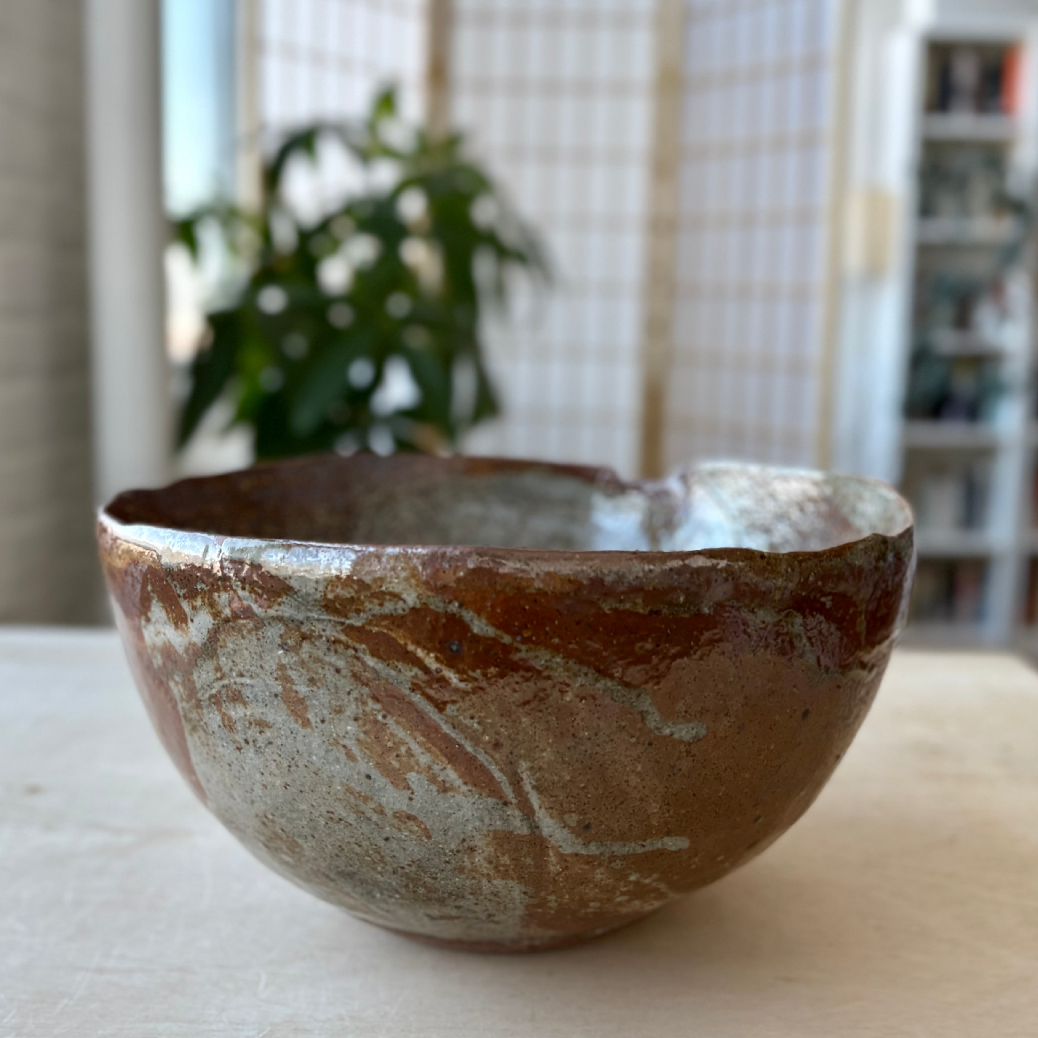 Across the interior and exterior, the surface shifts in tone and texture, recalling weathered stone, flowing water, or earth shaped slowly over time. Light gathers differently as the bowl is turned, revealing depth and variation without any single focal point. The form feels steady and assured, designed to be lived with rather than simply observed.