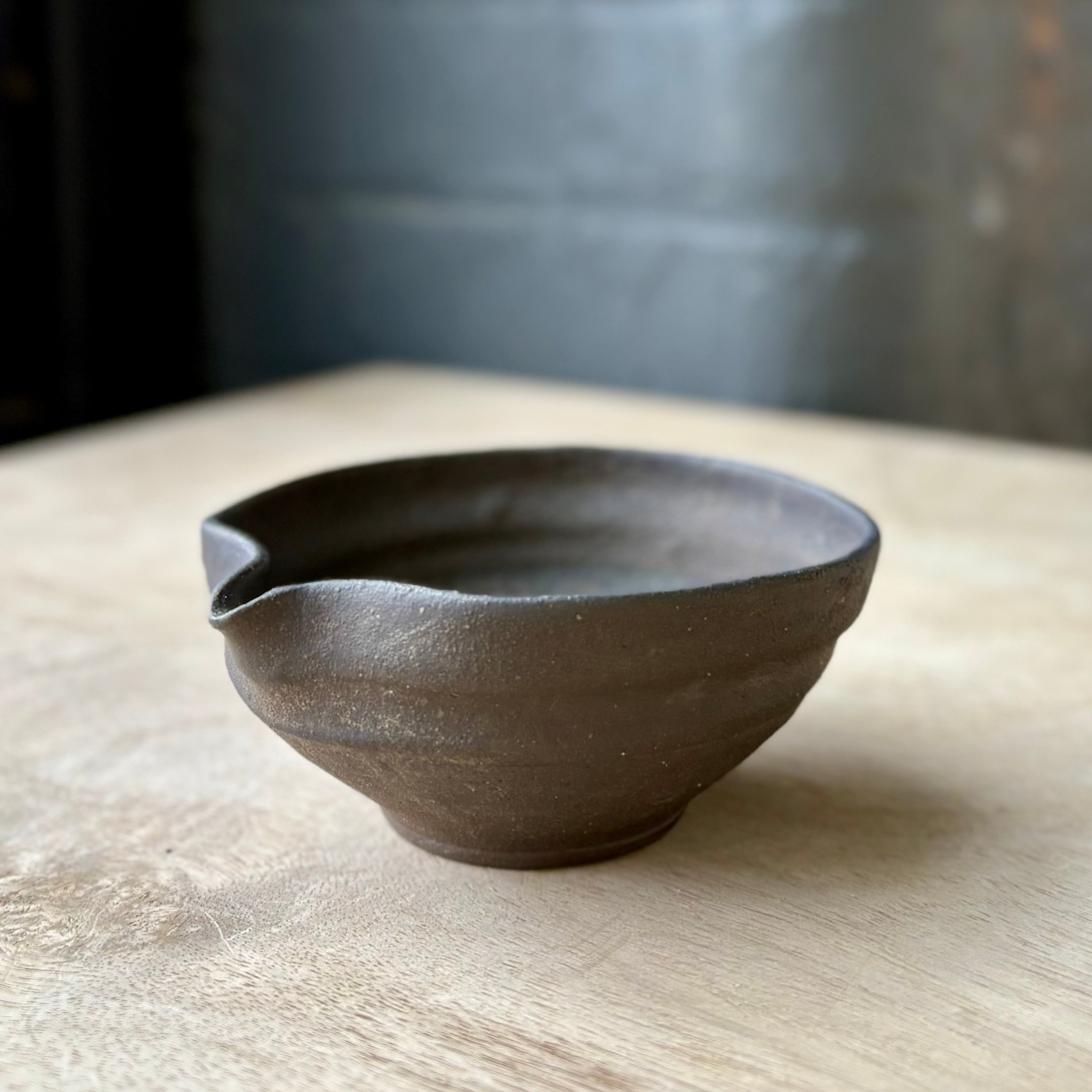 This katakuchi pouring bowl by Brandon Hale is made from wild clay using a combination of hand-building and wheel work. The compact form is anchored by a softly defined foot, while the integrated spout is shaped directly into the rim, giving the piece both clarity of function and an understated presence.