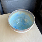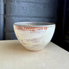 This hand-thrown gohan bowl by Juli Kirk features a gently rounded form with a rich sea-toned glaze pooling inside—shifting from deep turquoise to soft golden green. Outside, the creamy matte surface is subtly textured with reddish slip marks and tool work, giving it a sense of movement and grounded elegance. Ideal for rice, small soups, or even a comforting scoop of ice cream.