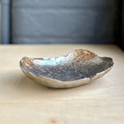 Andy Vlock(Codo Experiment)によるこの小さくユニークな皿は、異なる色の粘土を混ぜて鮮やかな模様を作り出す「練り込み」技法の技術を際立たせています。無釉でありながら輝きを放ち、鮑の殻を思わせる自然な虹色の光沢があり、異なる条件下で美しく光を反射します。直径約4〜5インチで、機能的にも装飾的にも最適な一品です。