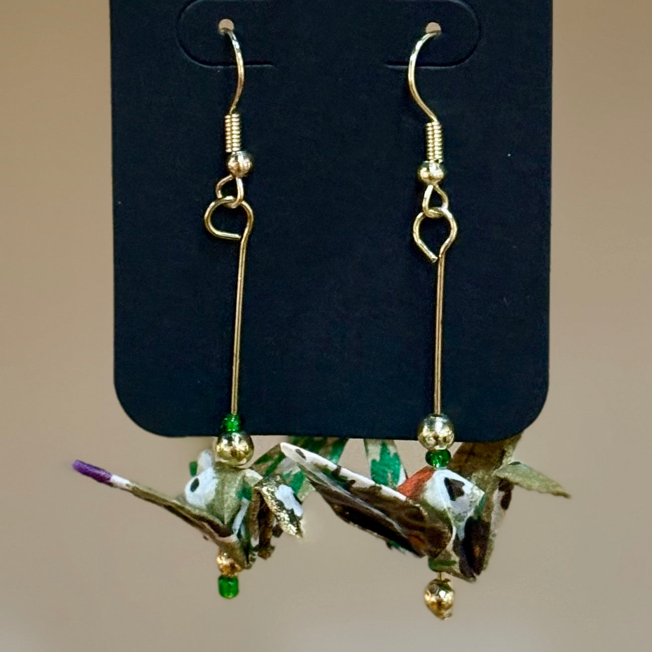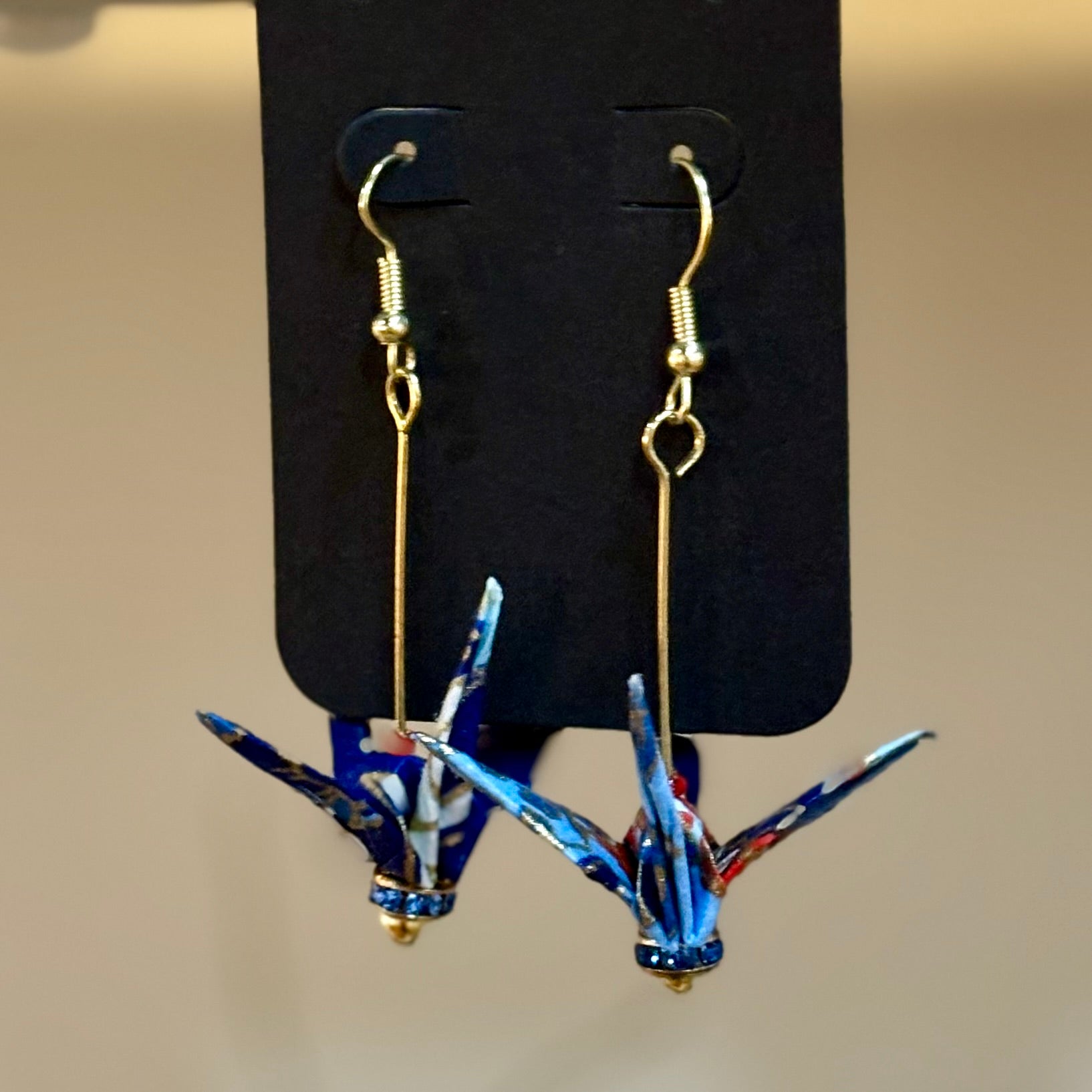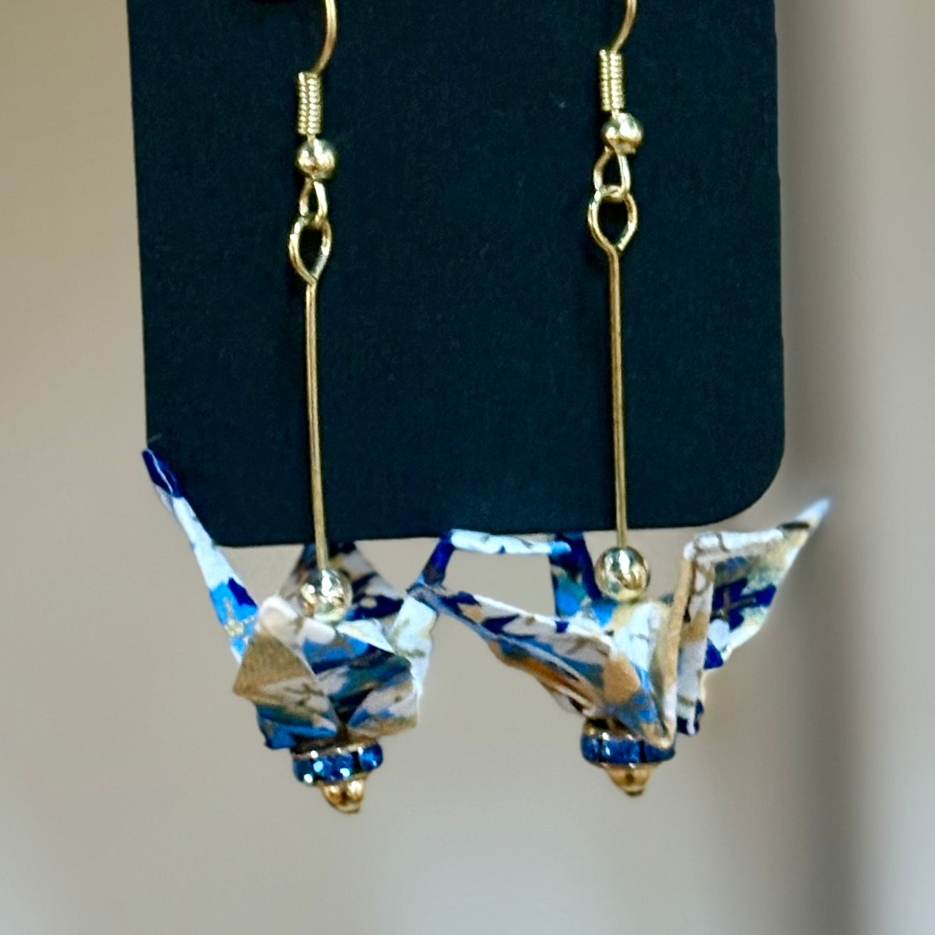 Delicate, joyful, and full of grace, these origami crane earrings are handmade by Liana Rice using traditional washi paper and glass or metal bead accents. Each pair features its own color palette and unique details—some with suspended cranes, some double-tiered, some with sea glass bases or vibrant beads. Liana, the daughter of longtime Hashi artist Akemi, carries on the spirit of care and craft with her own expressive touch. Lightweight and full of motion, they make lovely gifts or personal treasures.