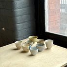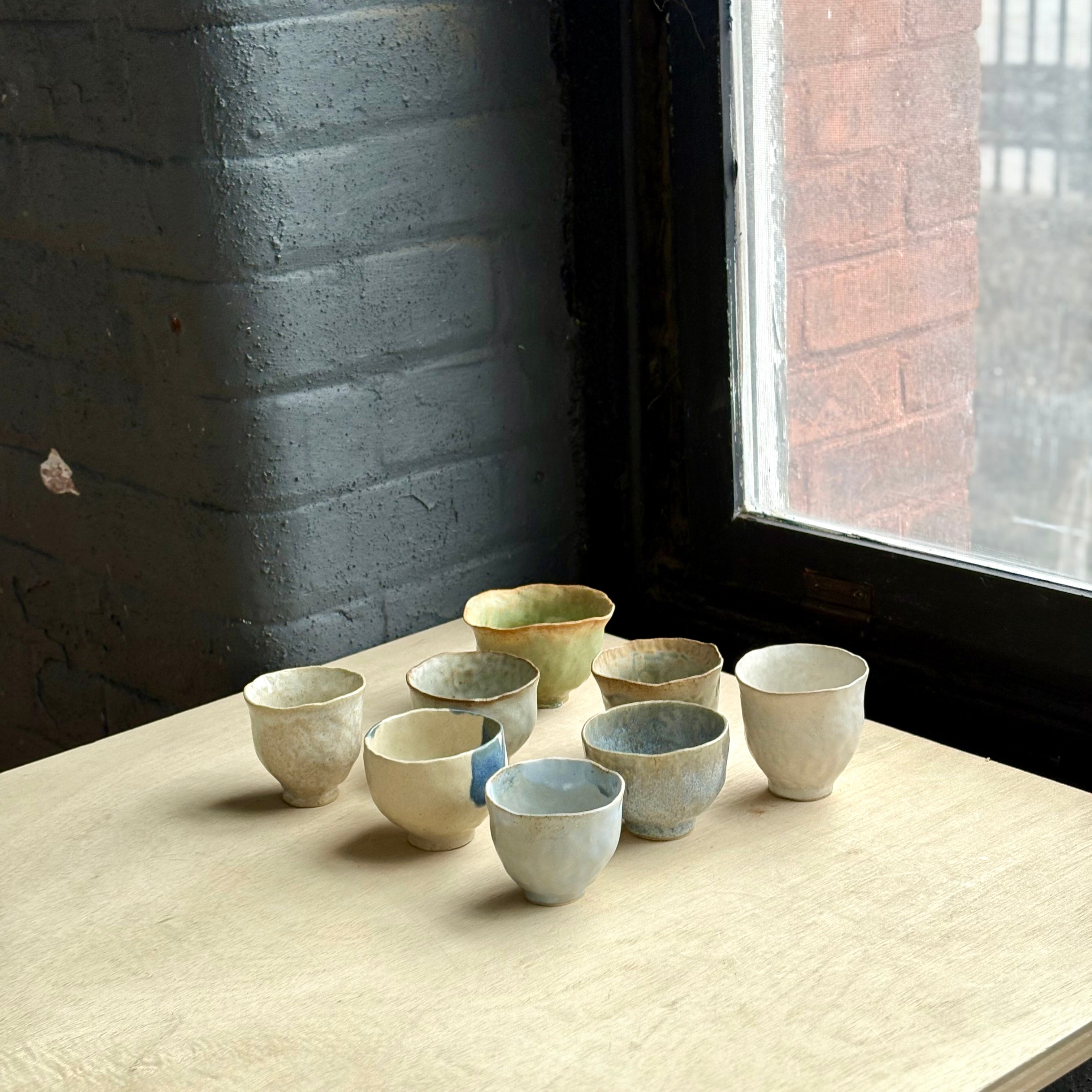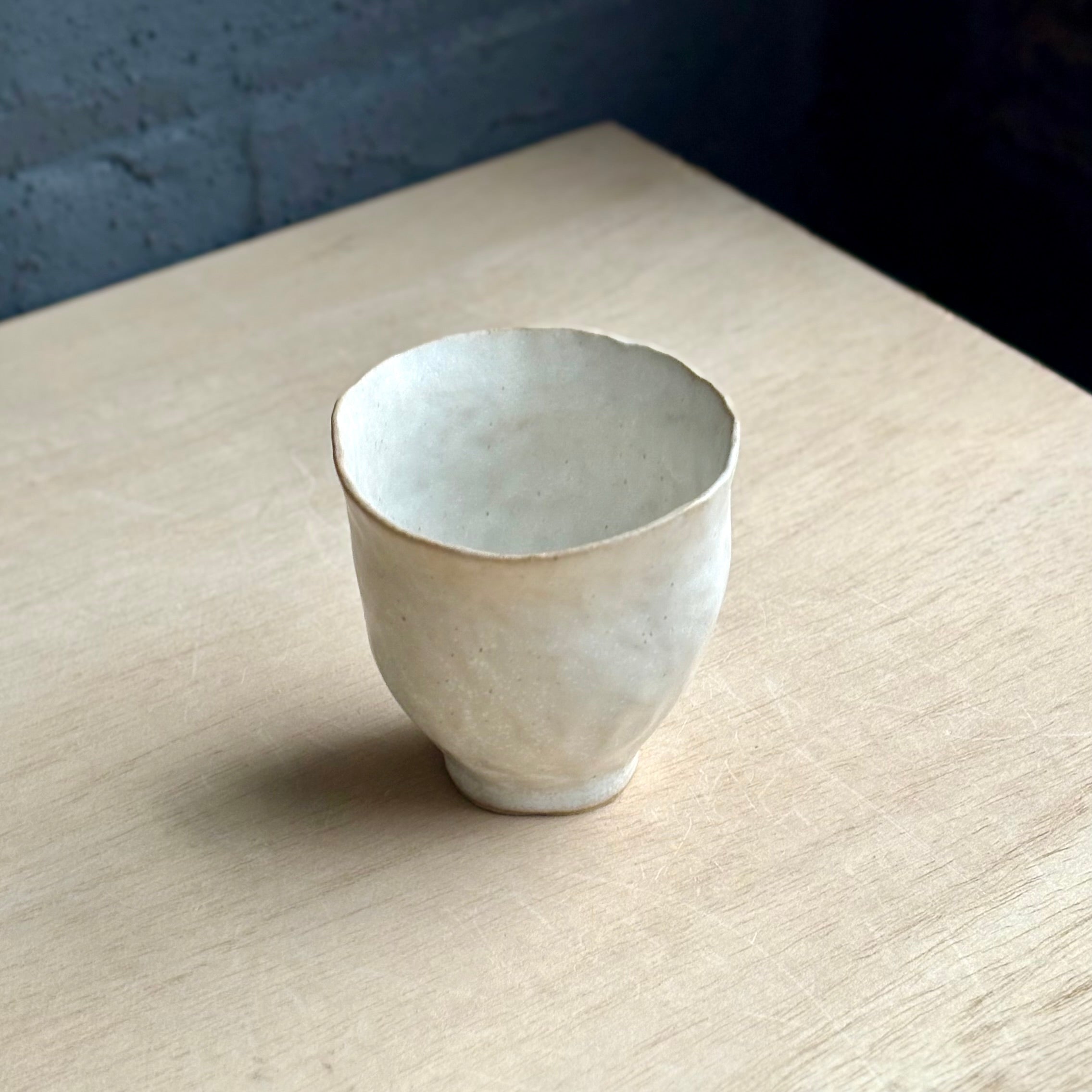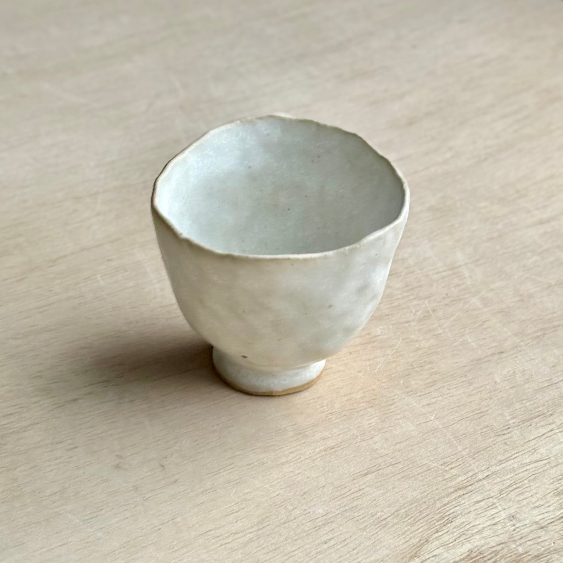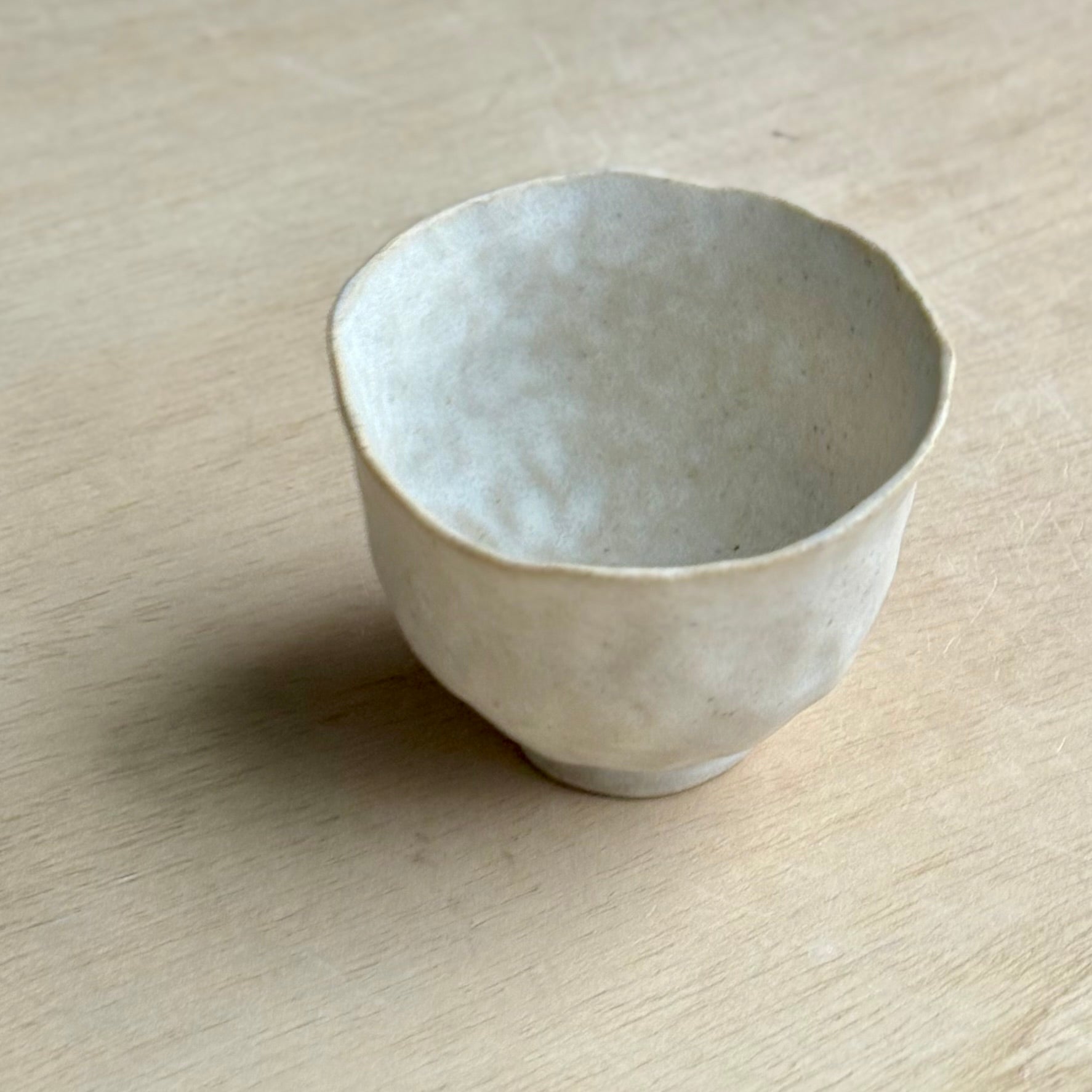 野尻あゆみさんによる手びねりのぐい呑み。一つひとつが静かな詩のような存在です。わずかに開いた高台と、ゆらぎのある縁がやさしく手になじみ、古くて新しい感覚を呼び起こします。釉薬はマットから透明感のあるものまで、やわらかな色調から深みのあるものまでさまざま。お酒やお茶、あるいは小さな喜びの器として、手と目に心地よく寄り添います。