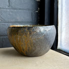 This large bowl by Brandon Hale is handbuilt using a reverse coiling process, beginning at the rim and building downward toward the base. Formed from wild clay, the exterior is finished with a black slip, while the interior is coated in a soft, variegated shino glaze. The piece is then wood and soda fired, allowing flame, ash, and vapor to shape its final surface.
