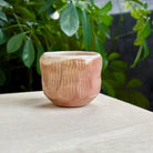 ガイ・マツダによるこの陶器のカップは、静かな力強さを感じさせます。内側は志野釉、外側は無釉で、手彫りの面取りが施されており、土そのものの質感が引き立ちます。薪窯焼成によって、灰や炎の痕跡が器の表面に独特の表情を生み出しています。お茶やお酒に、あるいはただ手に取って眺めたくなる一品です。