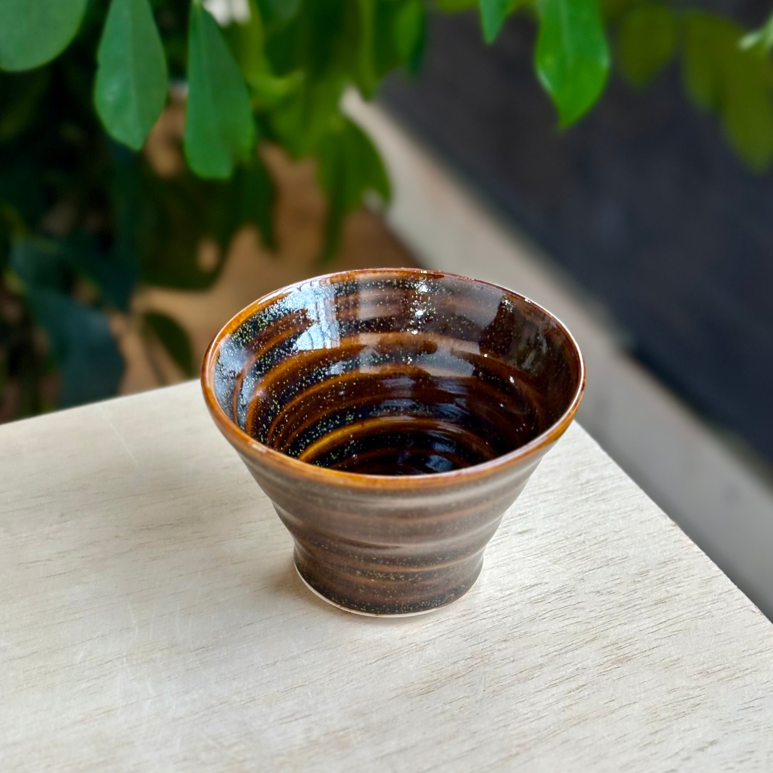 This porcelain cup by Guy Matsuda is gas-fired and finished in a black tea dust glaze, offering soft luster and subtle shifts in tone. Comfortable in the hand and beautifully proportioned, it’s well-suited for tea, sake, or small desserts. A quiet, versatile piece made for everyday use.