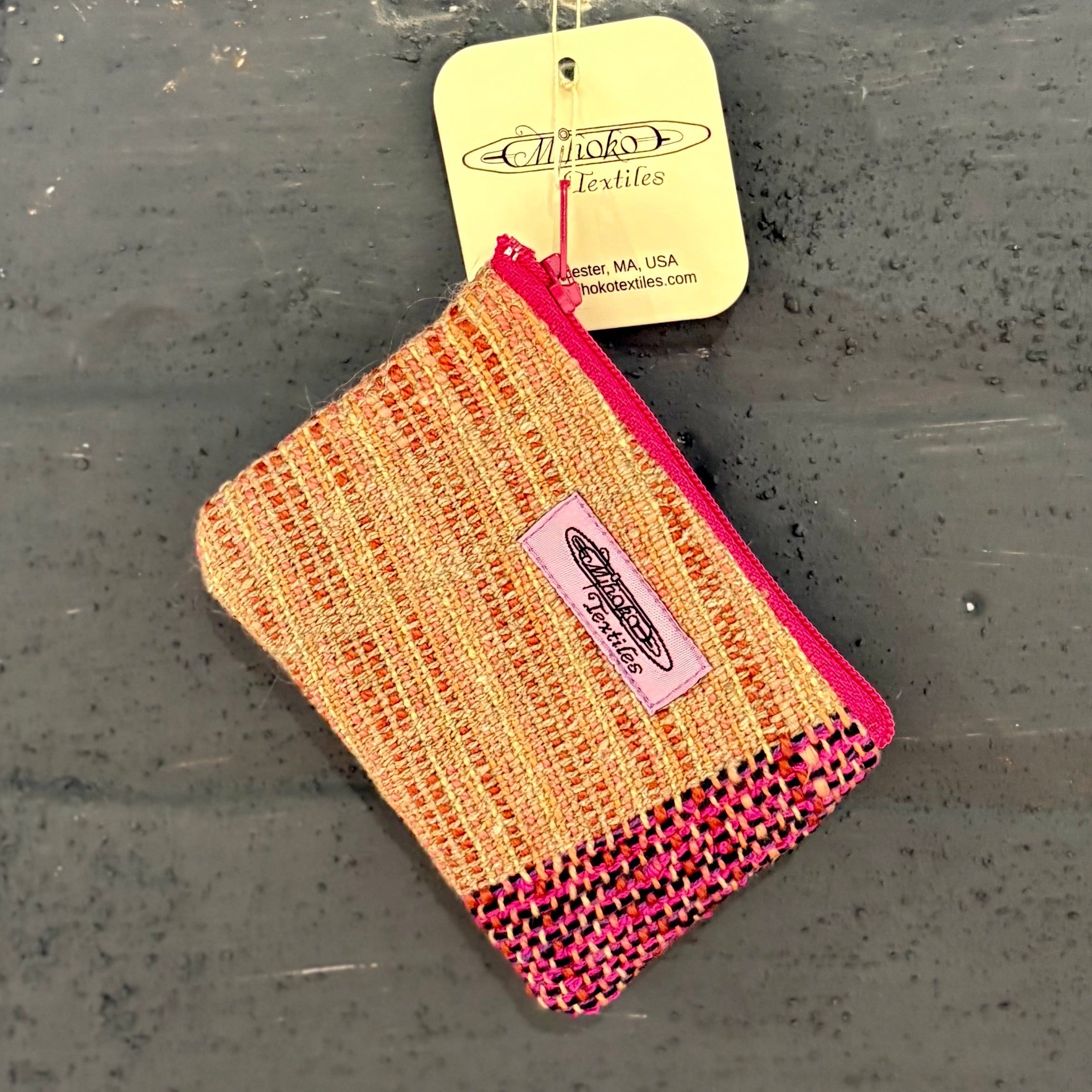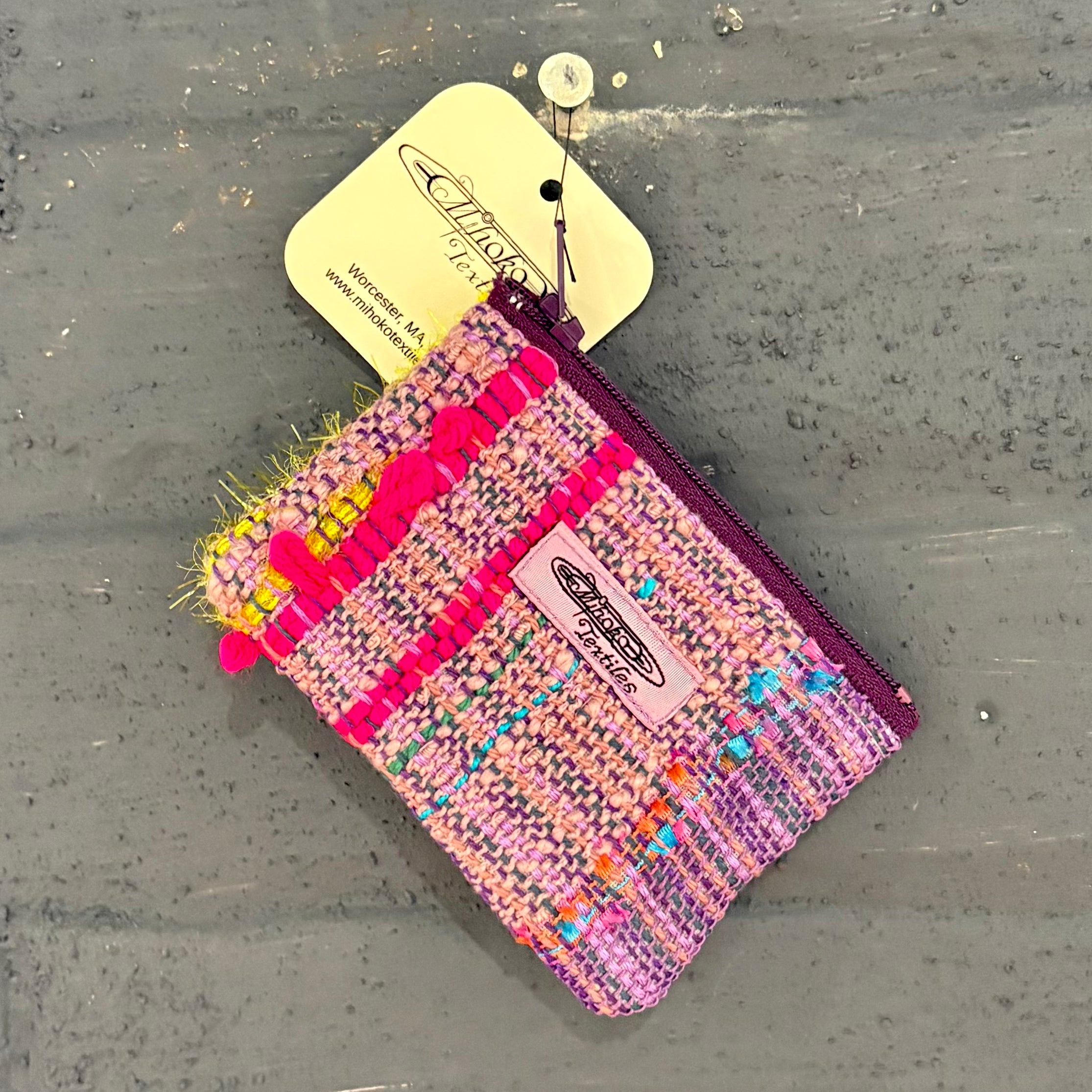 Each of these tiny pouches is a one-of-a-kind improvisation by fiber artist Mihoko Wakabayashi. Working without patterns or plans, Mihoko weaves as her heart sings—layering color, texture, and natural fibers in spontaneous conversation. These small zippered pouches are perfect for coins, earbuds, lip balm, rings, or lucky talismans.