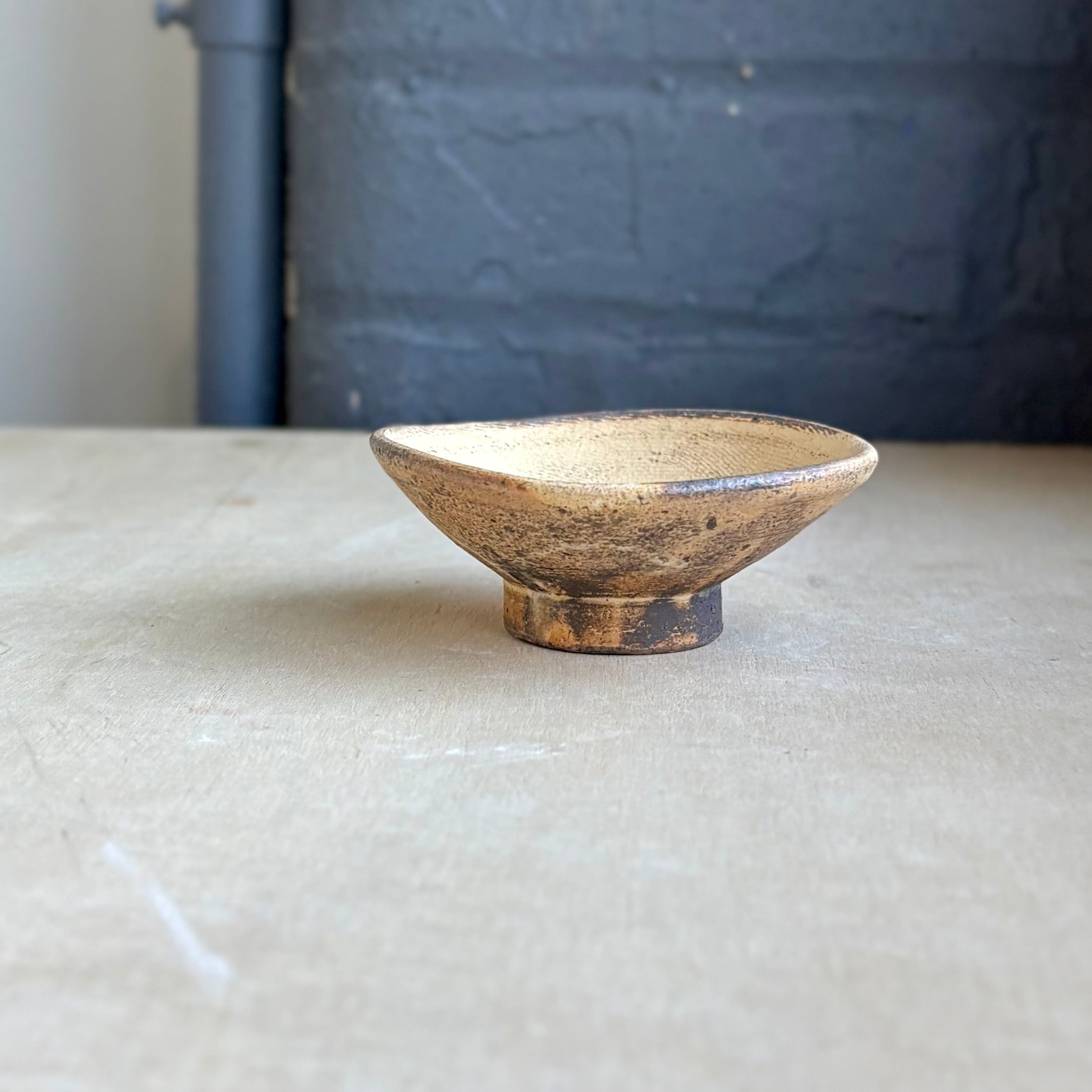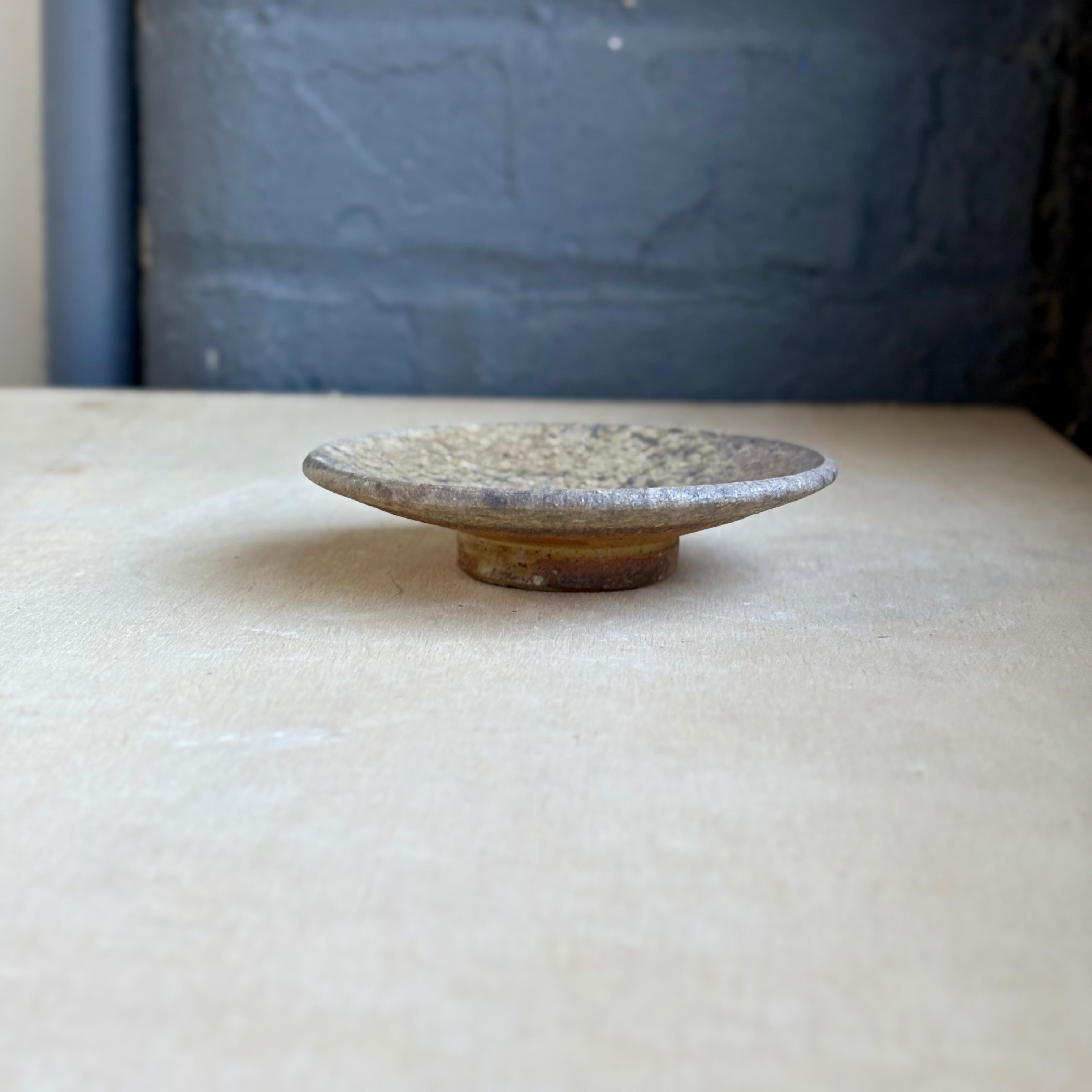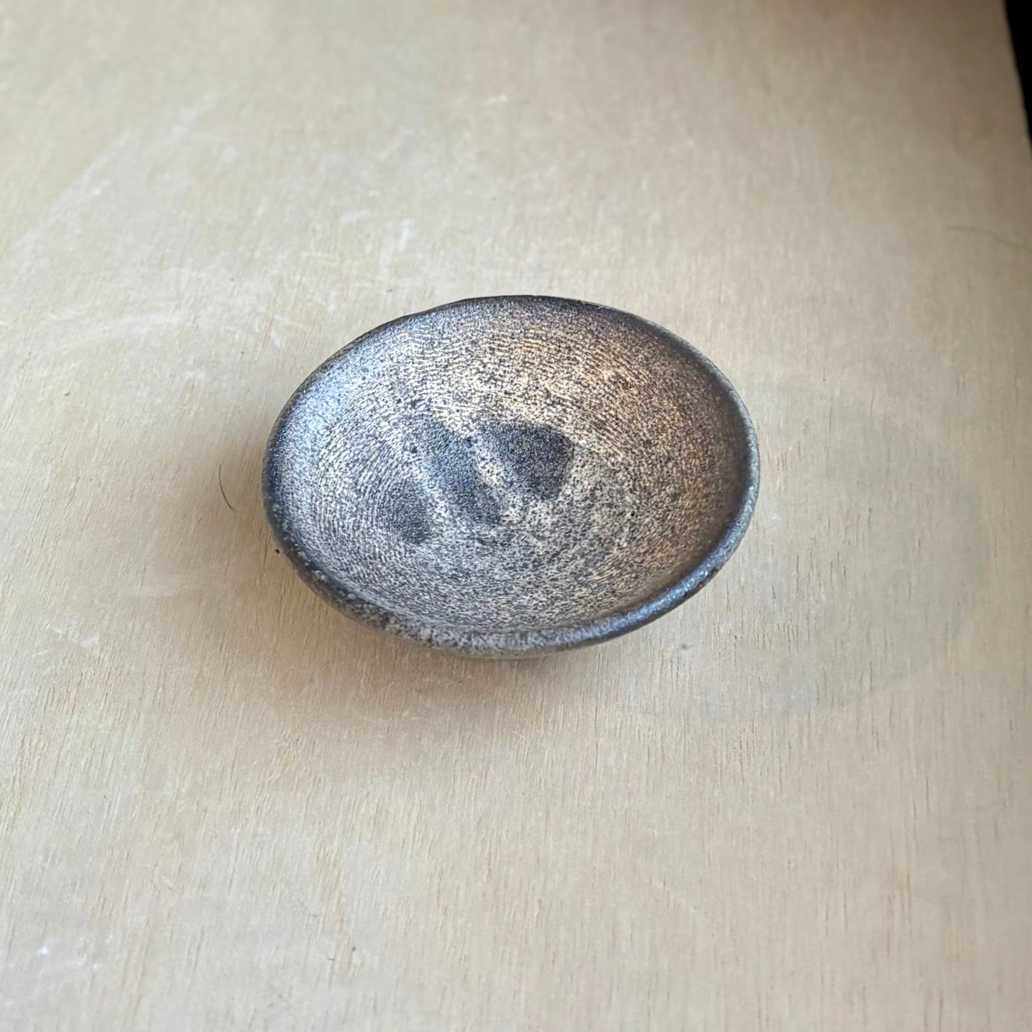 バーモント州の陶芸家 Silene DeCiucies による薪窯焼成の豆皿。長石と灰釉が炎の中で溶け合い、柔らかな灰色やクリーム色、土の色合いを映し出しています。一つ一つ異なる表情を持ち、小さな景色のように楽しめます。高さ約4cm、口径約8〜10cm、底径約4cm。醤油、薬味、漬物、お菓子などにぴったりの大きさ。食器用・電子レンジ対応・食洗機対応。