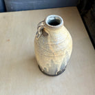 バーモント州の陶芸家 Silene DeCiucies による薪窯焼成の花瓶。長石と灰釉が炎の中で柔らかに溶け合い、クリーム色や灰色、土色の落ち着いた景色を生み出しています。高さ約15cm、直径約9cm。数本の花や小さなブーケにちょうど良く、そのまま飾っても存在感があります。薪窯による自然な変化で、一つ一つ異なる表情を持っています。