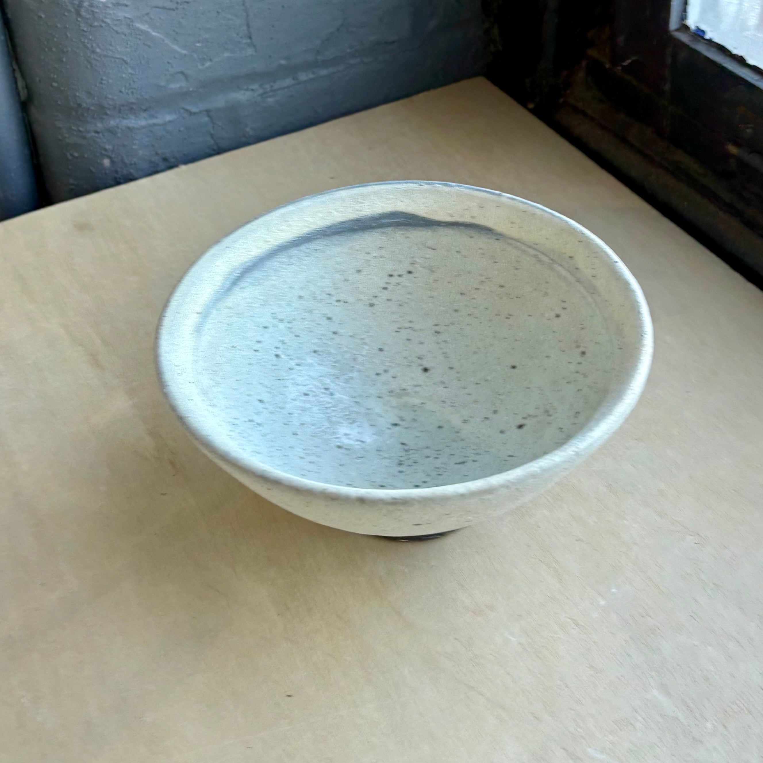 Handcrafted by Vermont potter Silene DeCiucies, these medium wood-fired stoneware bowls carry the subtle beauty of feldspar and ash surfaces, accented with cobalt markings near the rim. The fire softens the feldspar and ash into gentle tones of grey, cream, and earth, while the cobalt adds a playful gesture of blue. Measuring 3.25” high with a 7” rim and a 2.5” foot, these bowls are versatile for rice, noodles, or side dishes at the table. Each shows its own variations in finish, making every piece unique. Food safe, microwave safe, and dishwasher safe.