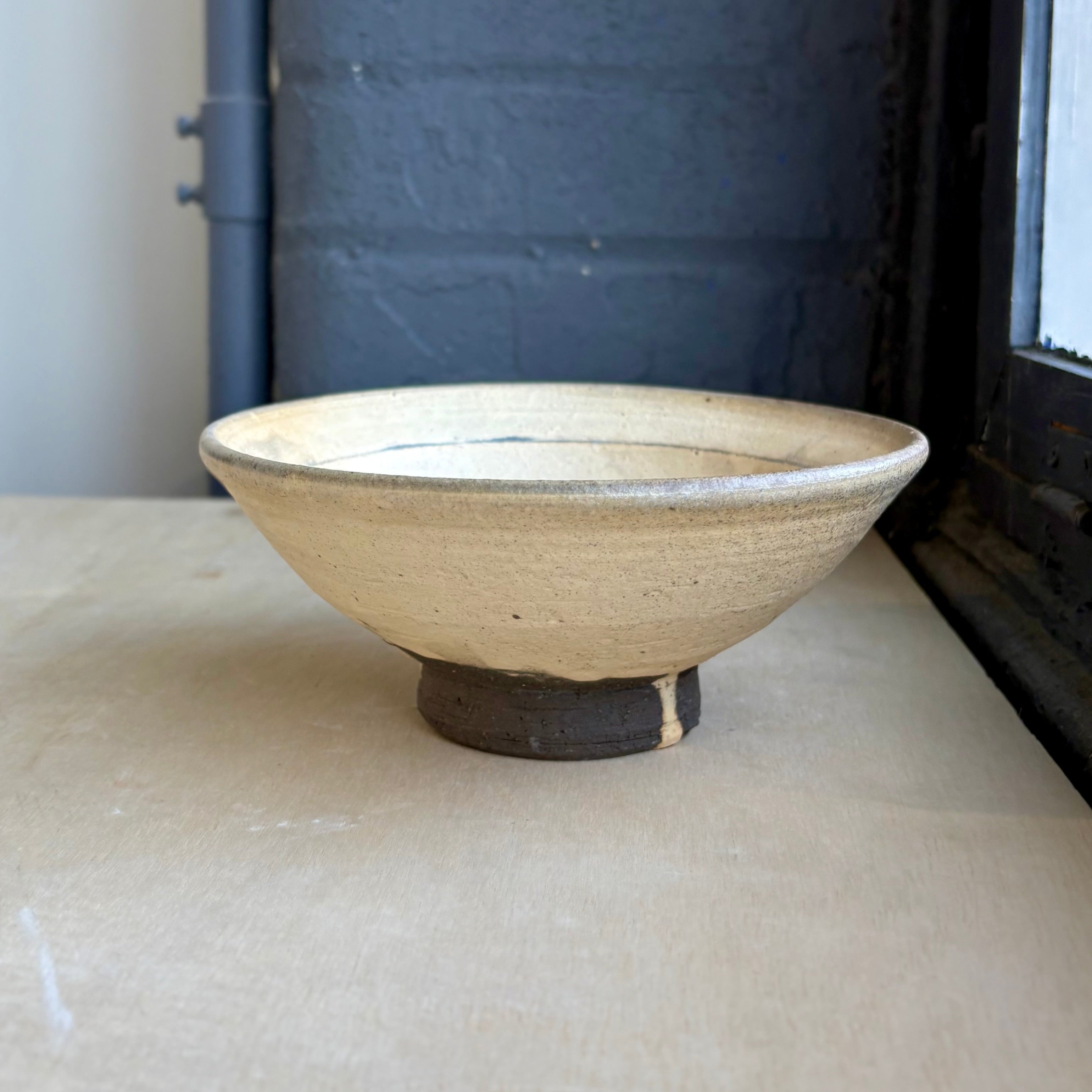 バーモント州の陶芸家 Silene DeCiucies による薪窯焼成の中鉢。長石と灰釉が炎の中で柔らかな灰色やクリーム色、土の色合いを映し出し、一つ一つ異なる景色を生み出しています。高さ約8cm、口径約18cm、底径約7cm。ご飯、スープ、サラダ、小鉢料理など幅広く活躍します。どの器もわずかに異なる表情を持ち、唯一無二の魅力があります。食器用・電子レンジ対応・食洗機対応。