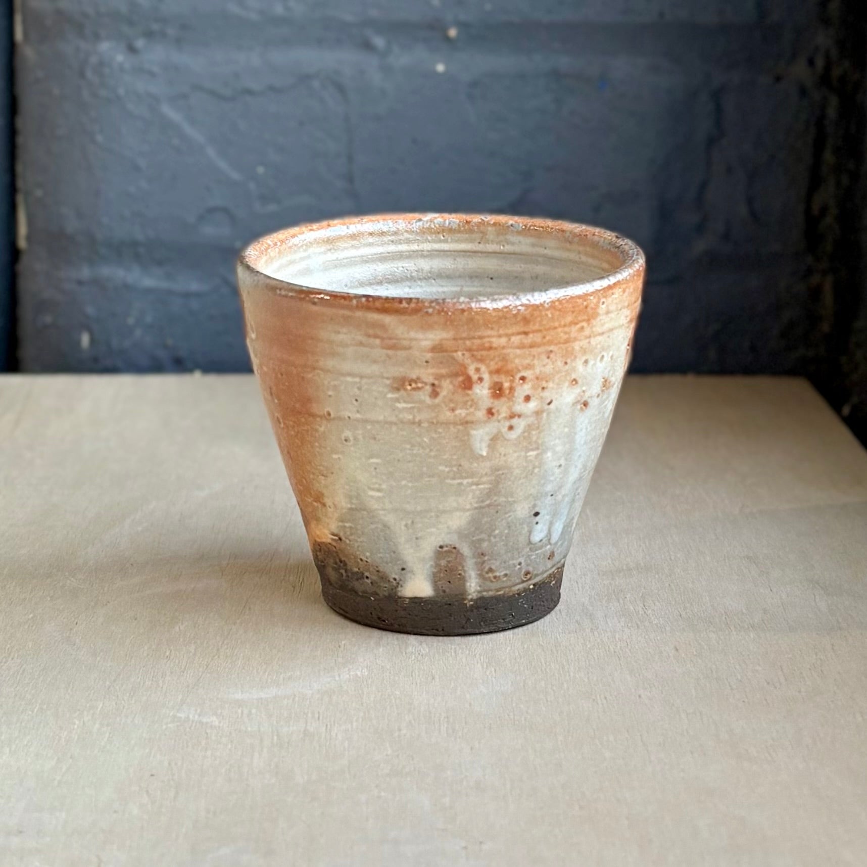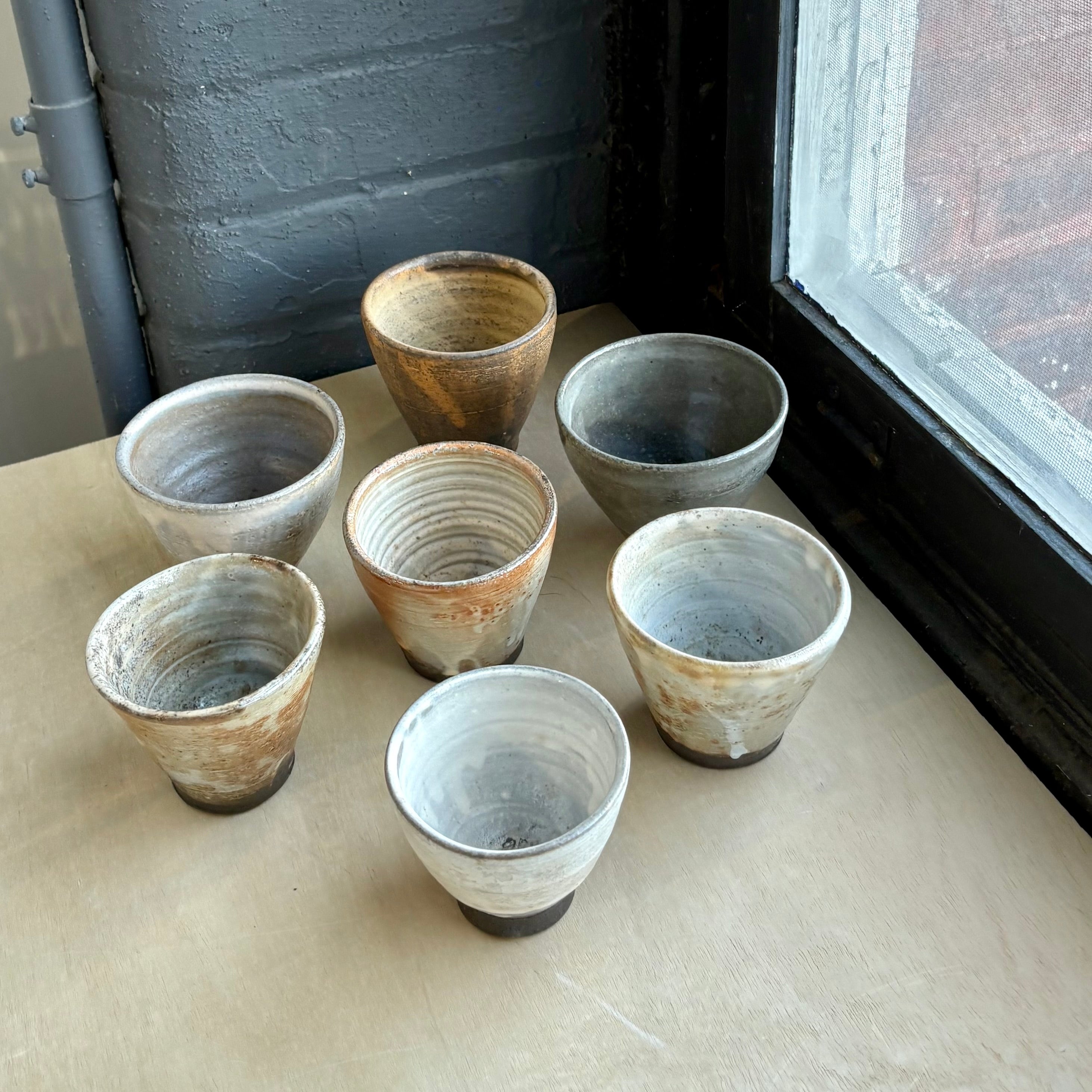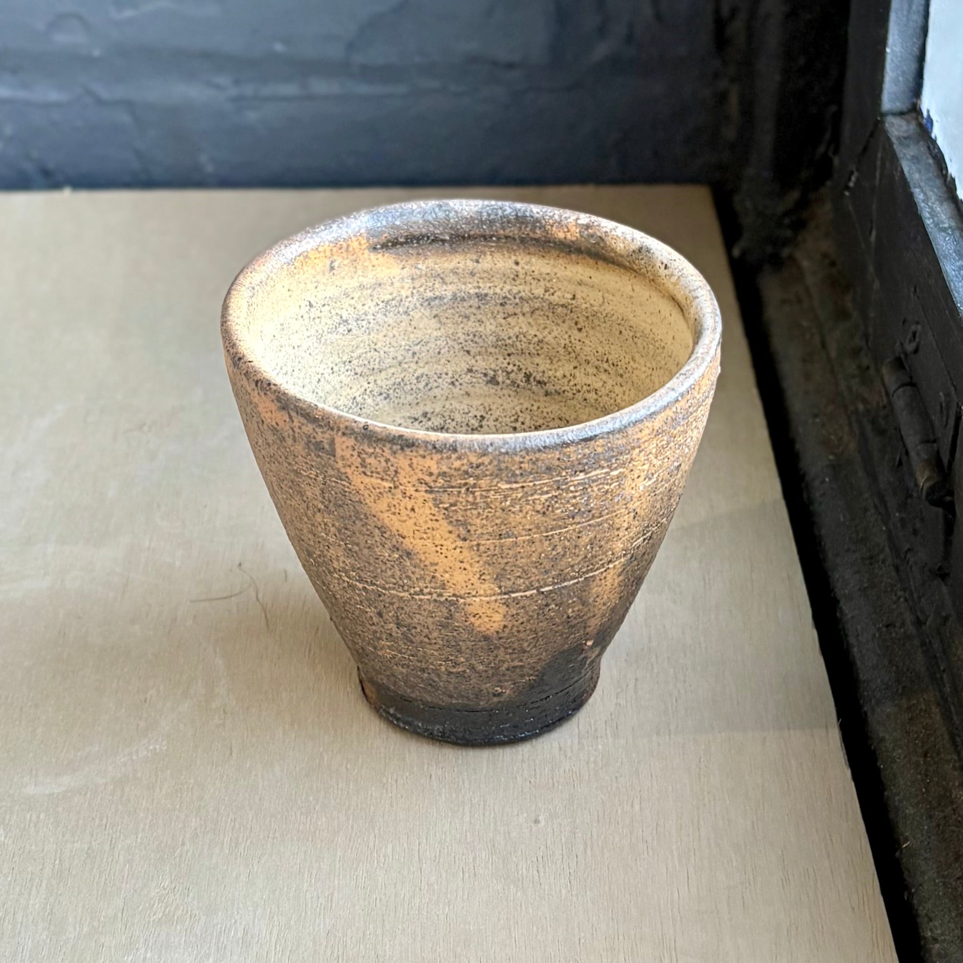 バーモント州の陶芸家 Silene DeCiucies による薪窯焼成の湯のみ。一つ一つが炎と灰、土によって生まれた独自の景色をまとっています。温かみのある土色を帯びたものもあれば、涼やかな灰色や銀色に輝くものもあり、それぞれに個性があります。形は手に馴染みやすく、お茶や小さな飲み物にぴったりです。高さ約9cm、口径約9cm、底径約5cm。食器用・電子レンジ対応・食洗機対応。温かい色合いまたは涼しい色合いをお好みの場合は、チェックアウト時に備考欄にご記入ください。