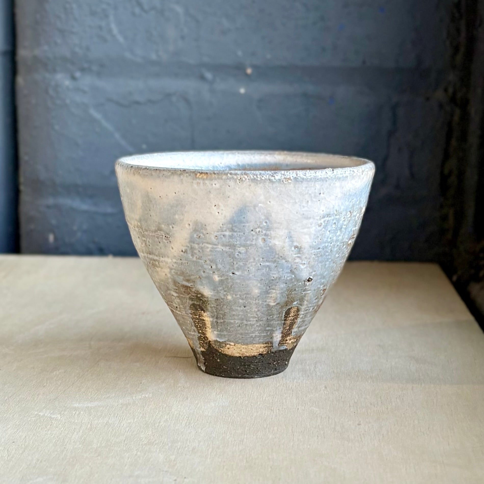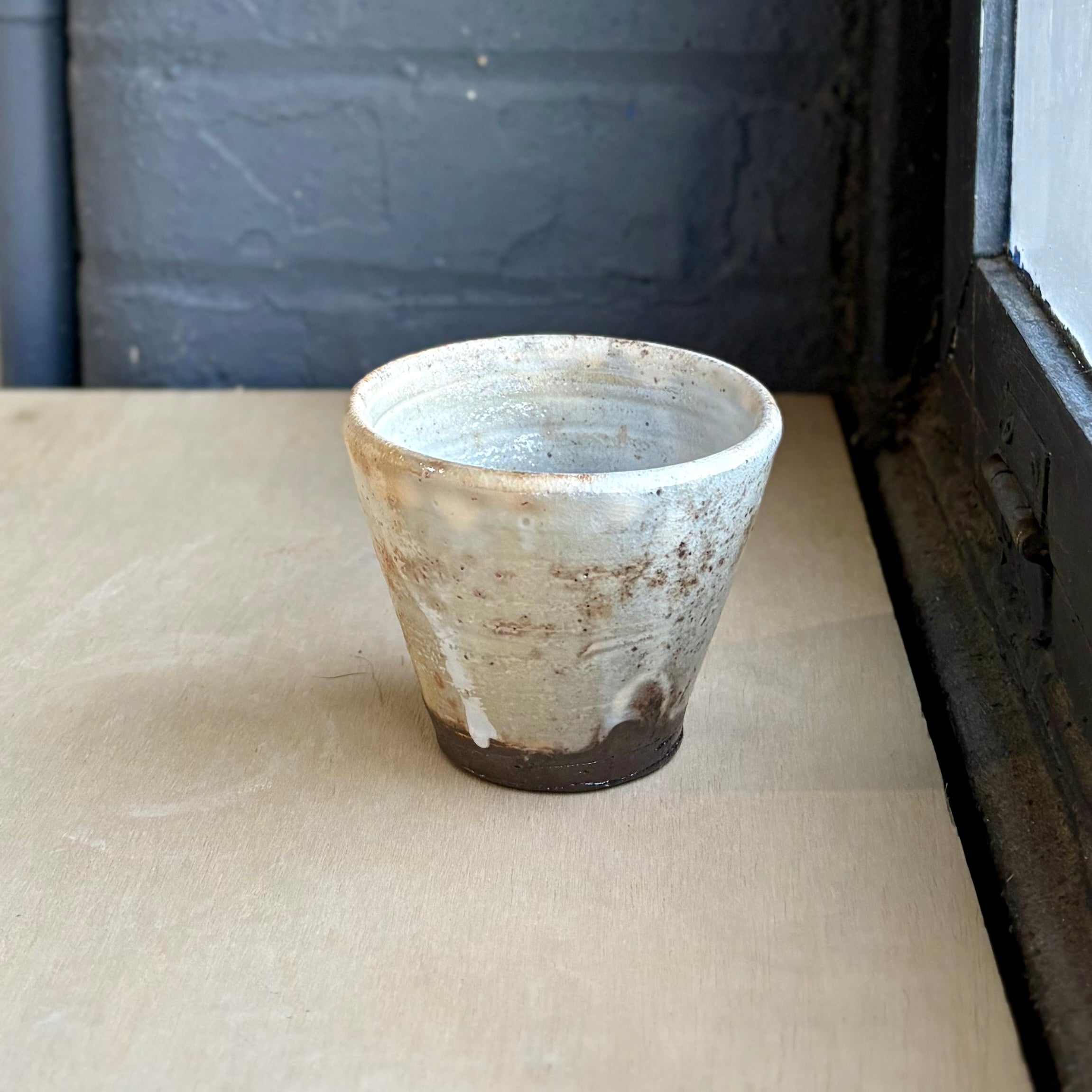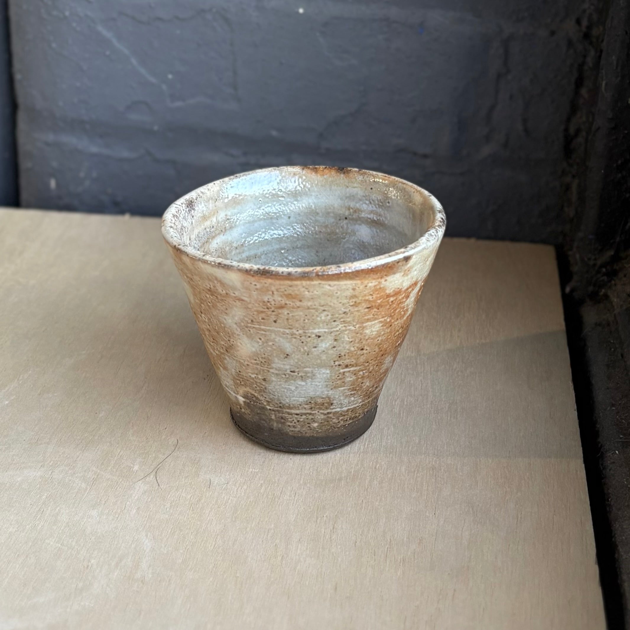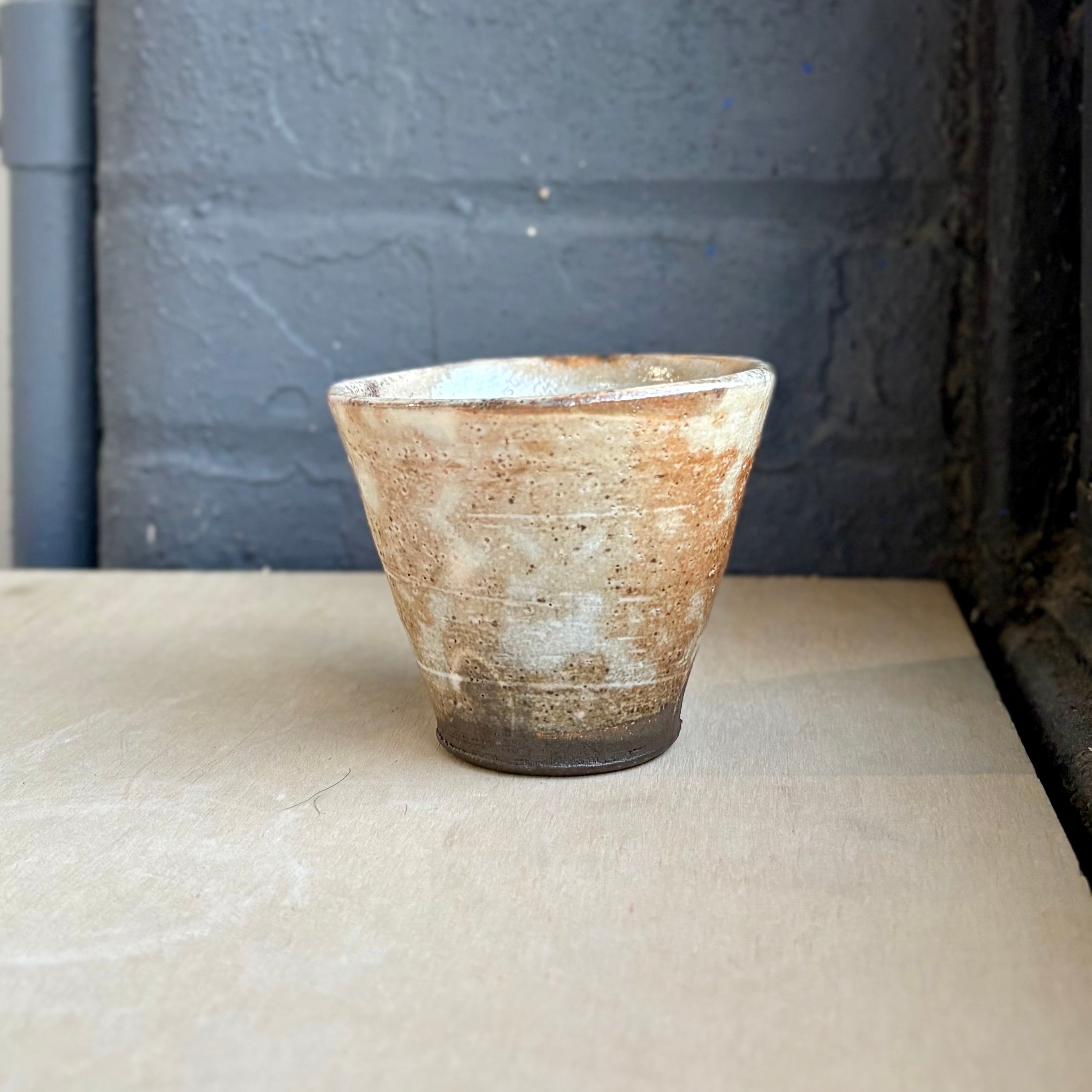 バーモント州の陶芸家 Silene DeCiucies による薪窯焼成の湯のみ。一つ一つが炎と灰、土によって生まれた独自の景色をまとっています。温かみのある土色を帯びたものもあれば、涼やかな灰色や銀色に輝くものもあり、それぞれに個性があります。形は手に馴染みやすく、お茶や小さな飲み物にぴったりです。高さ約9cm、口径約9cm、底径約5cm。食器用・電子レンジ対応・食洗機対応。温かい色合いまたは涼しい色合いをお好みの場合は、チェックアウト時に備考欄にご記入ください。