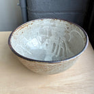 高さ約12.7cm、直径約24.1cm(高台部分 約11.4cm) のこのボウルは、サラダ、パスタ、またはテーブルでのシェアディッシュに最適な大きさです。手彫りのリッジが心地よい手触りを生み、使うたびに楽しめる存在感があります。実用性とアート性を兼ね備えた一品として、食卓やインテリアに自然な美を添えます。