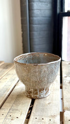 This pedestal bowl by Andy Vlock merges elegant form with functional artistry. Handbuilt from red clay and coated in porcelain slip and ash glaze, it carries a quiet sophistication, further enhanced by the smooth, gas-fired finish. The bowl’s elevated structure (9 inches high) is supported by a sturdy 2.5-inch pedestal foot, with a wide 10.5-inch rim and deep 7.5-inch basin, making it ideal for serving, display, or ceremonial use. A balance of strength and refinement, this piece transforms any setting with its graceful proportions and tactile beauty.