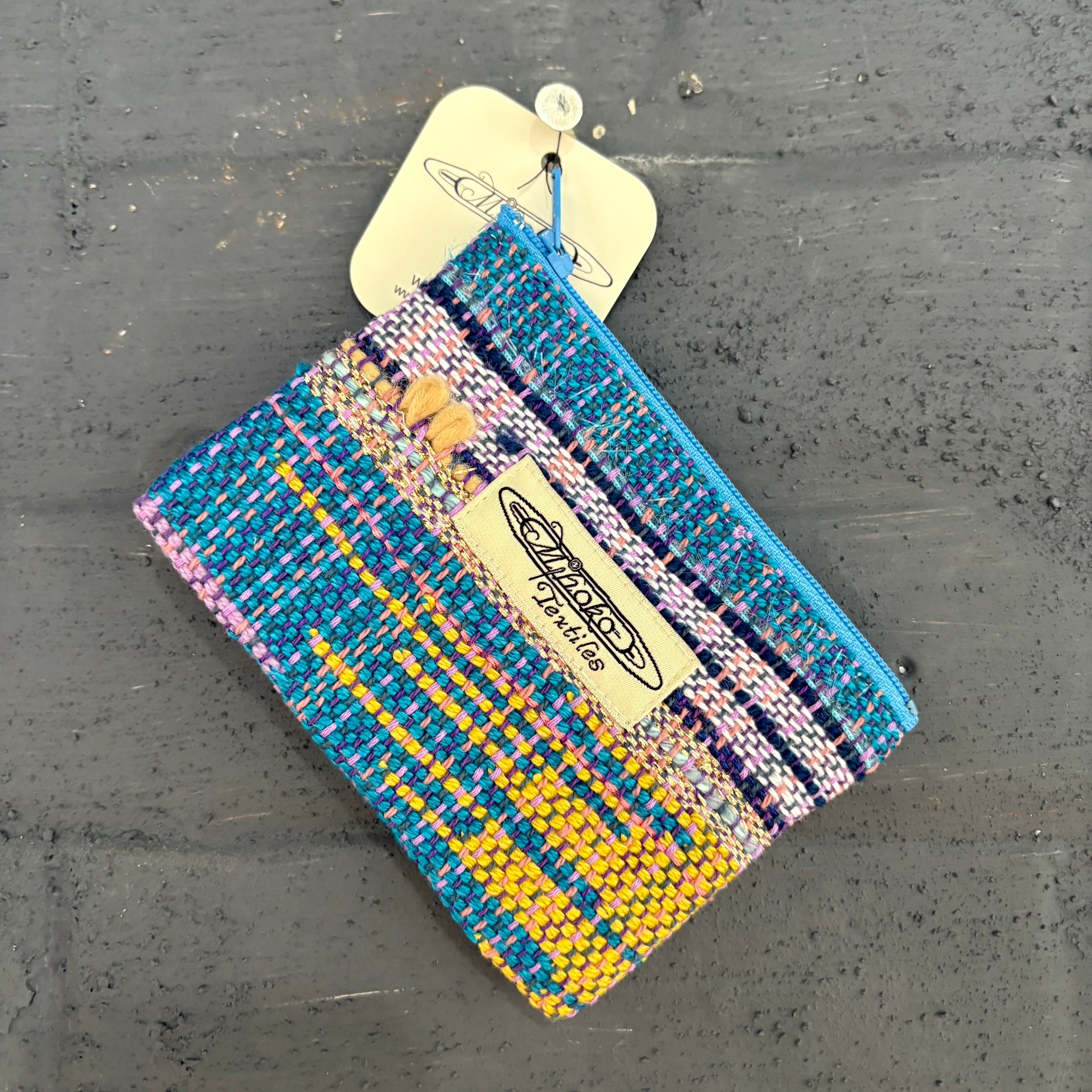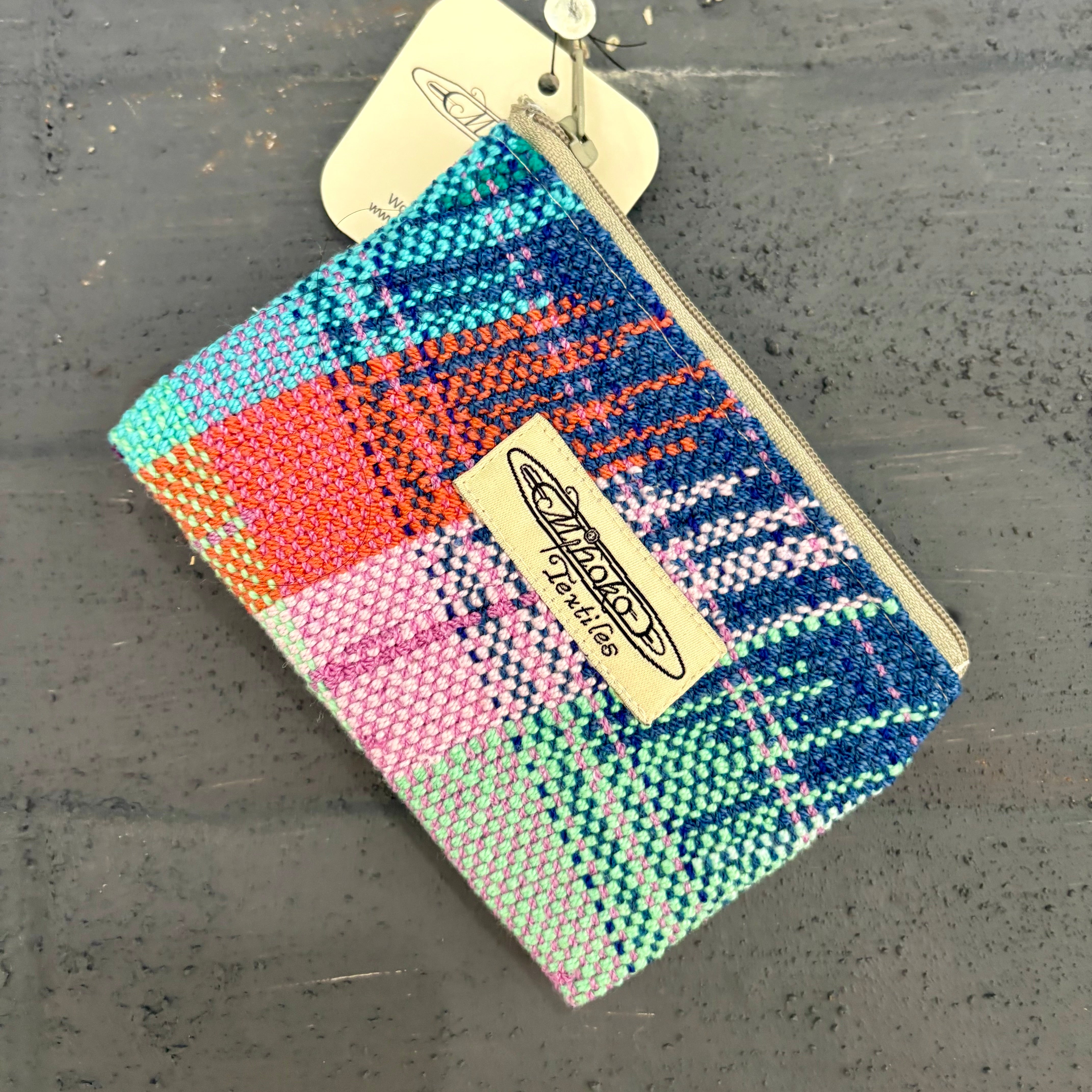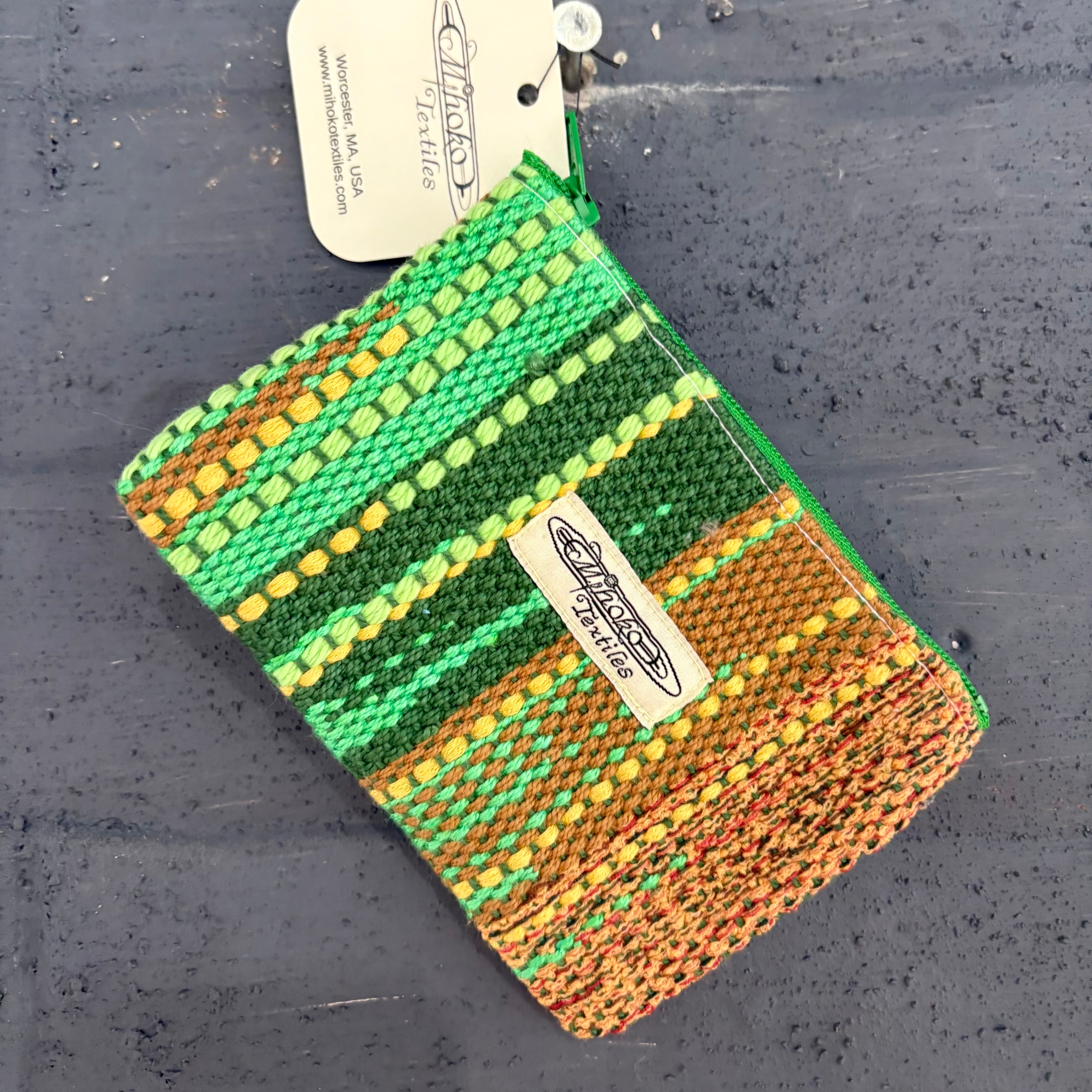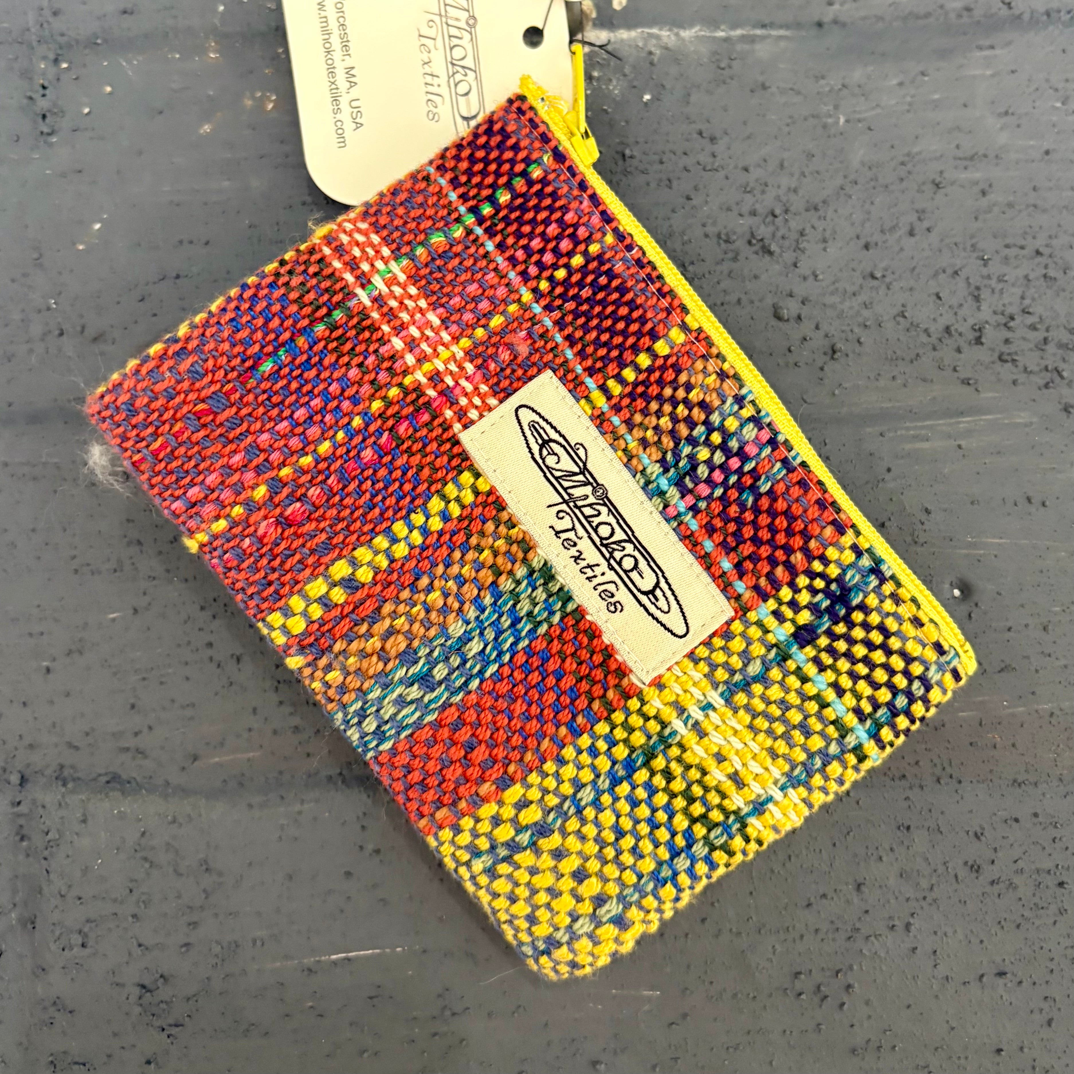 Mihoko Wakabayashiによるこの小さなポーチは、すべて即興で織られた一点もの。決まったパターンを持たず、感覚のままに色と糸を重ね、手の中に収まる小さな布の世界を生み出しています。カードや鍵、リップクリームなど、日常の小物を入れるのにぴったり。