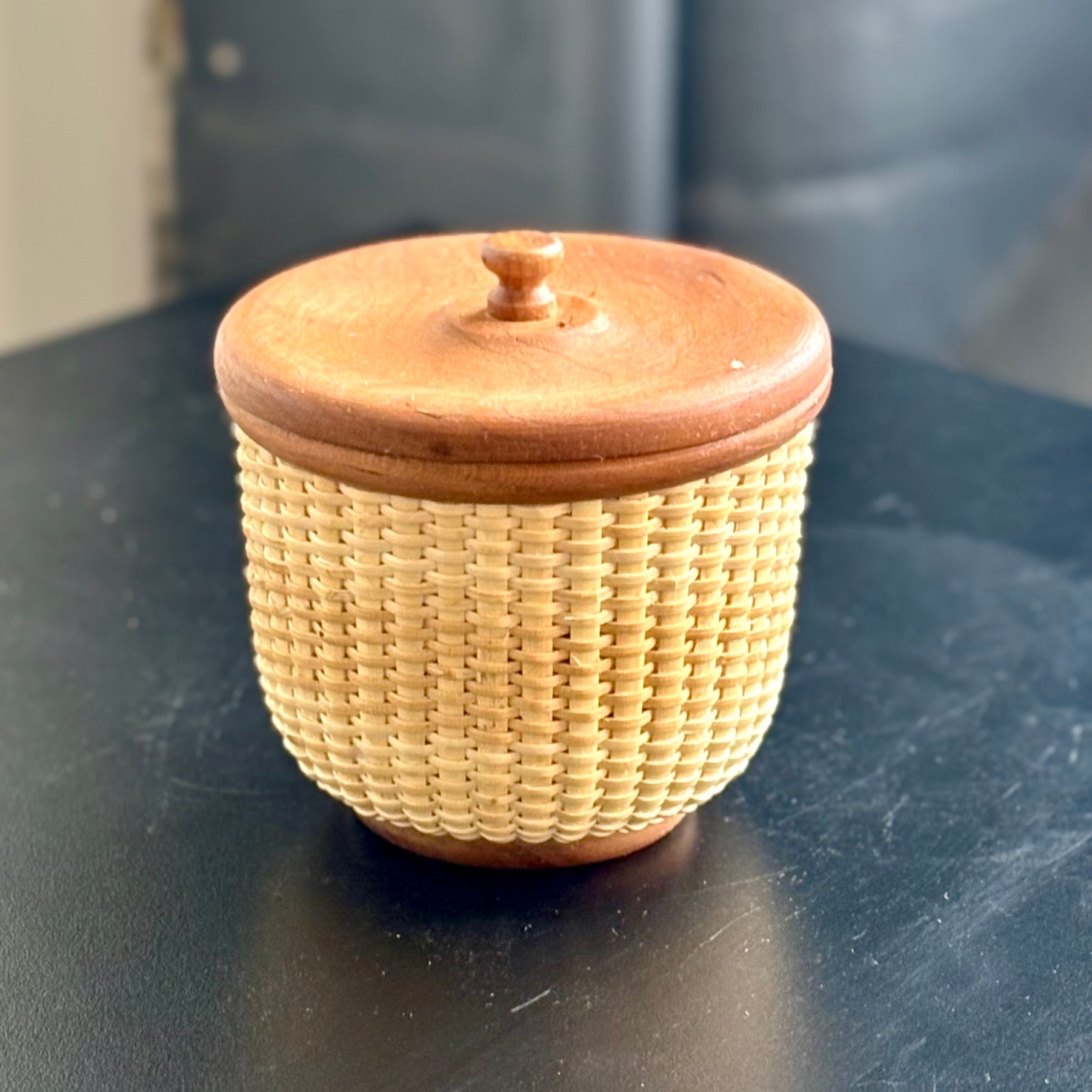 Handwoven in the Nantucket tradition by Japanese artist Akemi Rice, this petite 3” basket is ideal for candies, keepsakes, or simply catching the eye. Its tight cane weave and clean lines embody a timeless attention to detail. Though the form is rooted in New England, the quiet elegance and care in each fiber reflect Akemi’s broader practice—where every material is treated with respect and every object holds space for beauty.