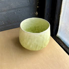 A matte white glaze wraps the exterior in a calm, milky softness, while the interior opens into a pale tea-green tone, pooling slightly at the base. The contrast is quiet and organic, evoking early spring greens emerging through mist.