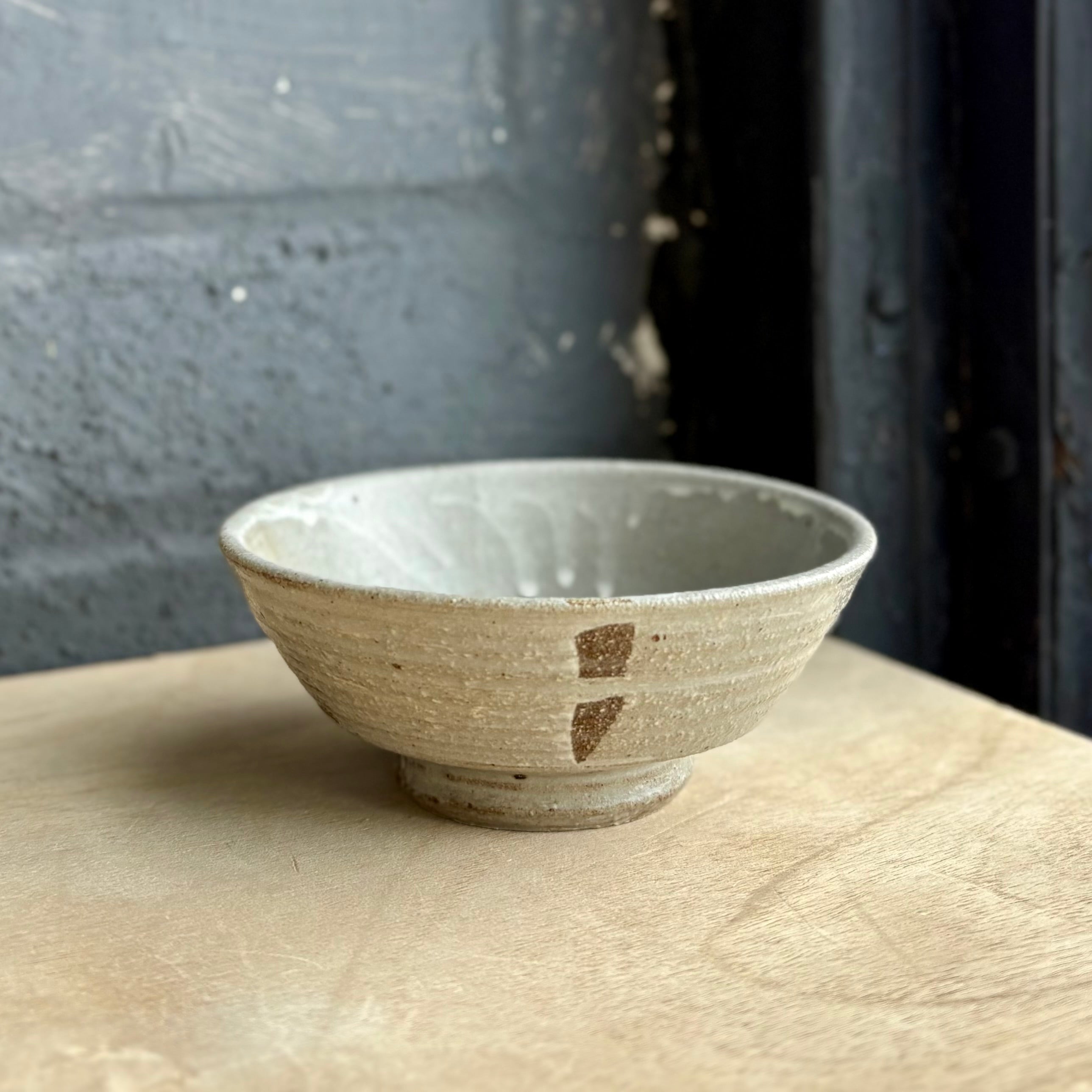 野土から作られた土に白化粧が施され、落ち着いたグレーの表情に仕上げられたBrandon Haleの小鉢。低く開いた形とやわらかく広がる縁が、手に自然に馴染みます。