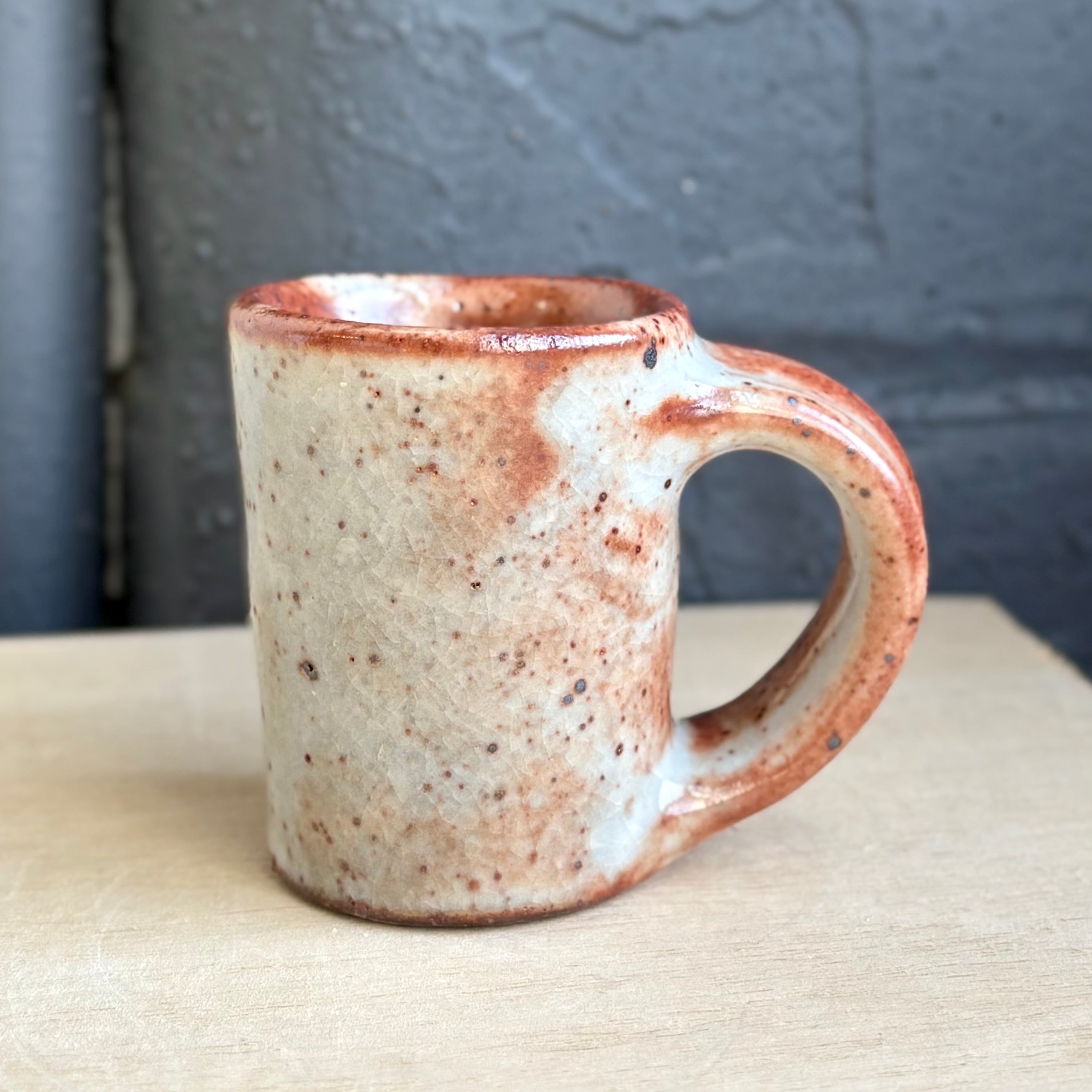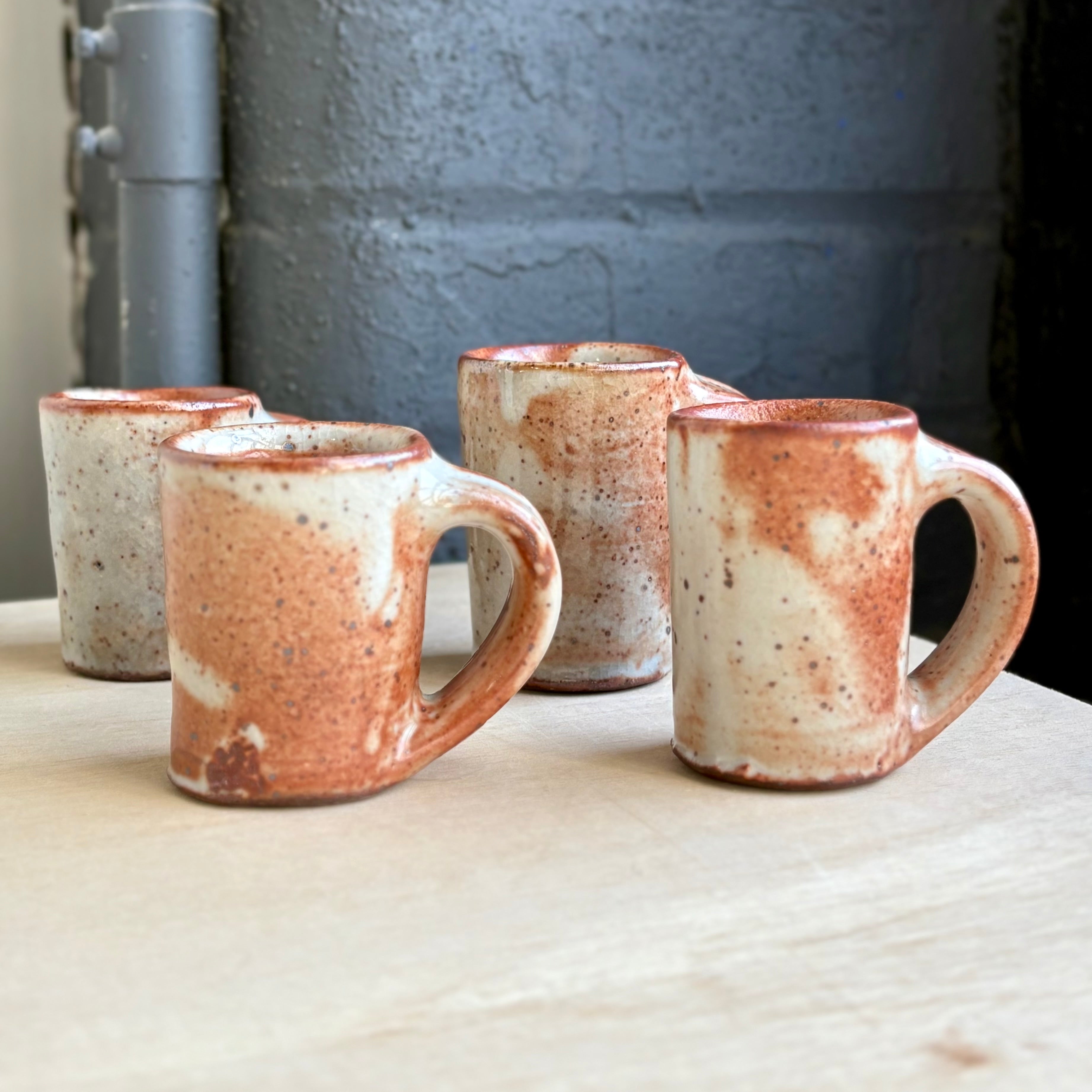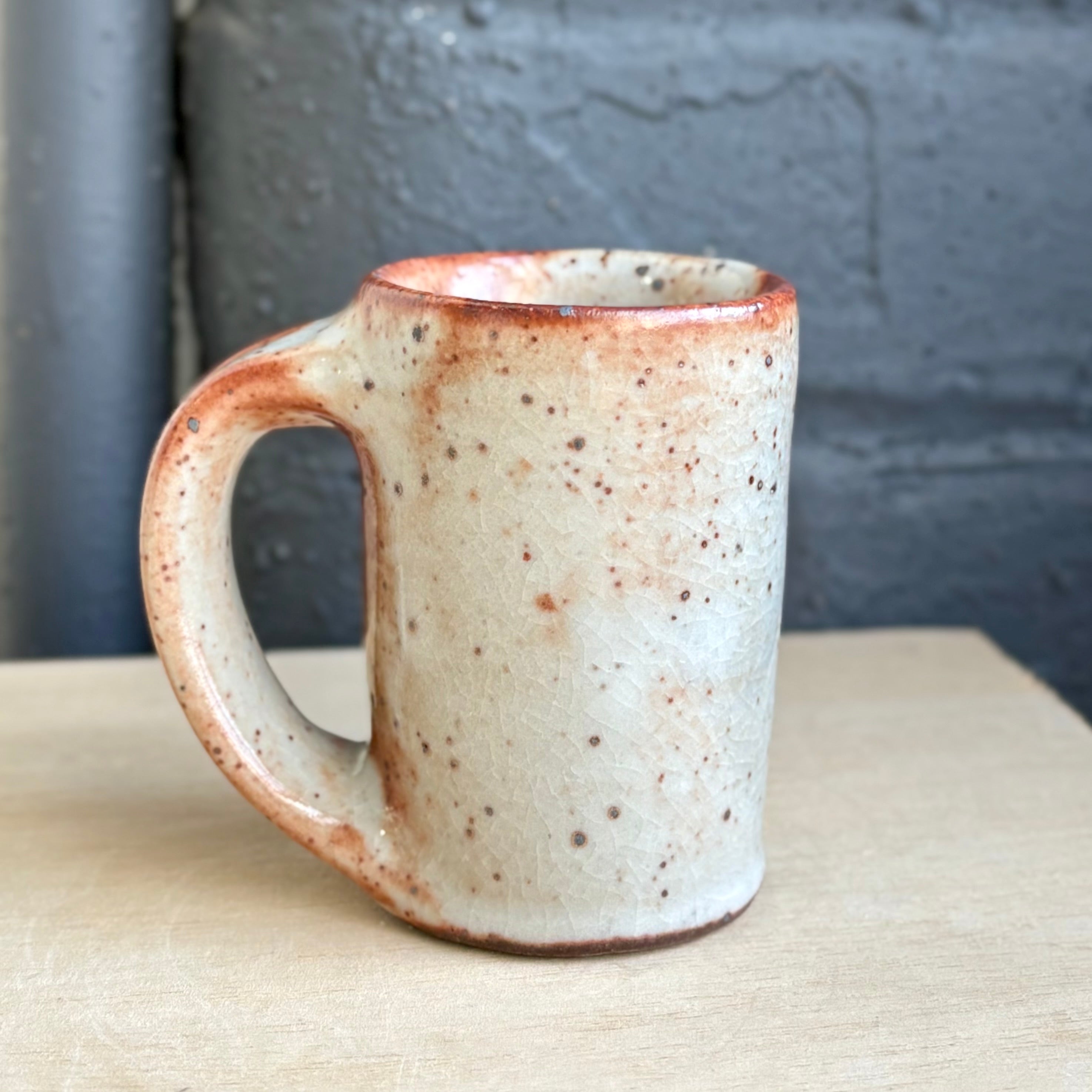 Josh Kopin’s large espresso cups burn with a quiet intensity. Each one features his signature Firefall glaze, a layered field of creamy whites and deep rust that moves like smoke across the surface. The form is slightly taller and more upright than his smaller espresso cups, with a generous handle and satisfying weight in the hand. A perfect companion for a double shot, or a bold little pour of morning light.