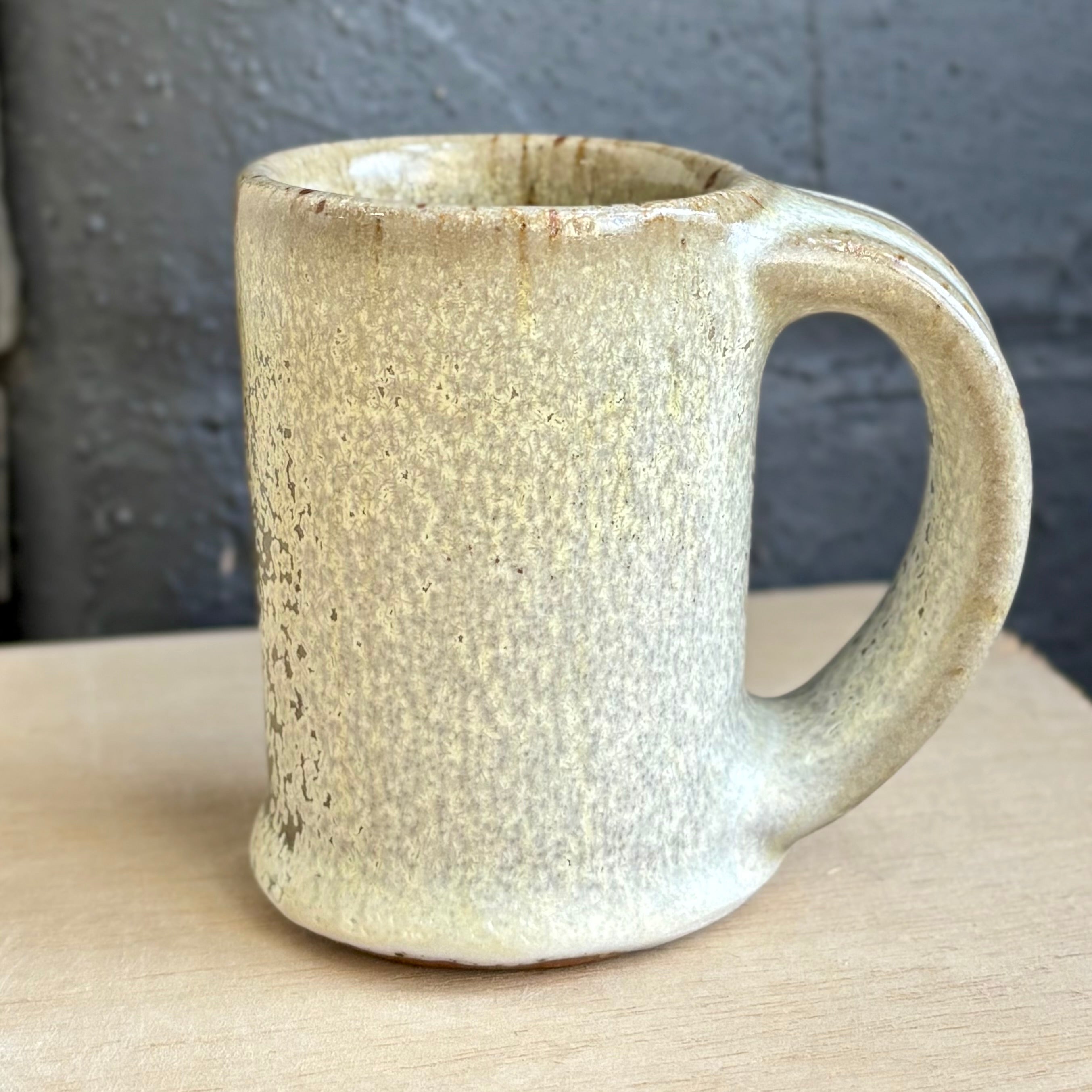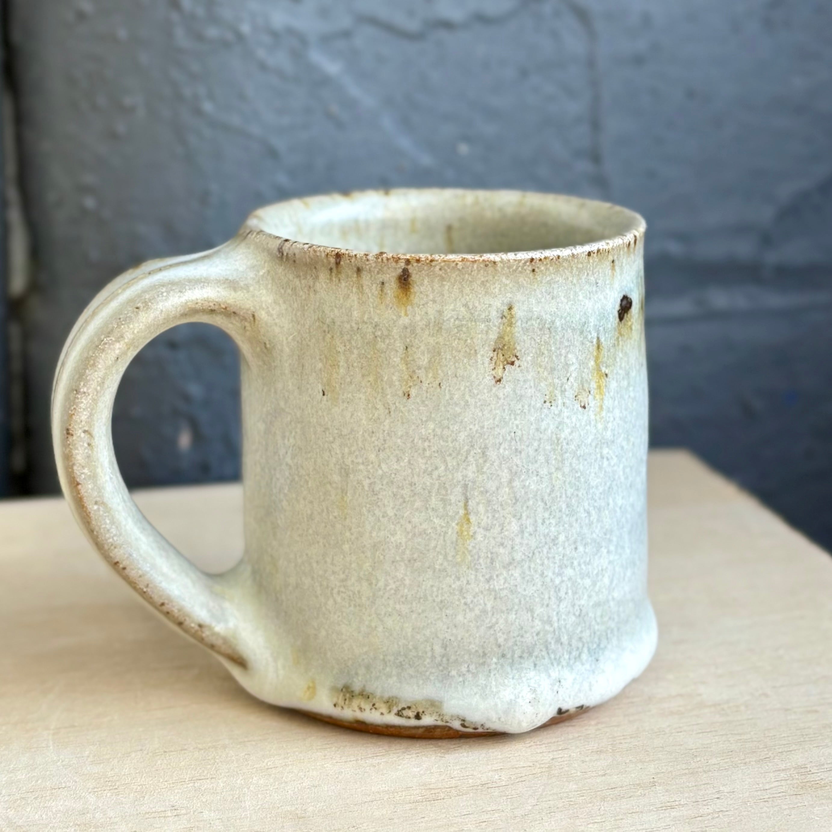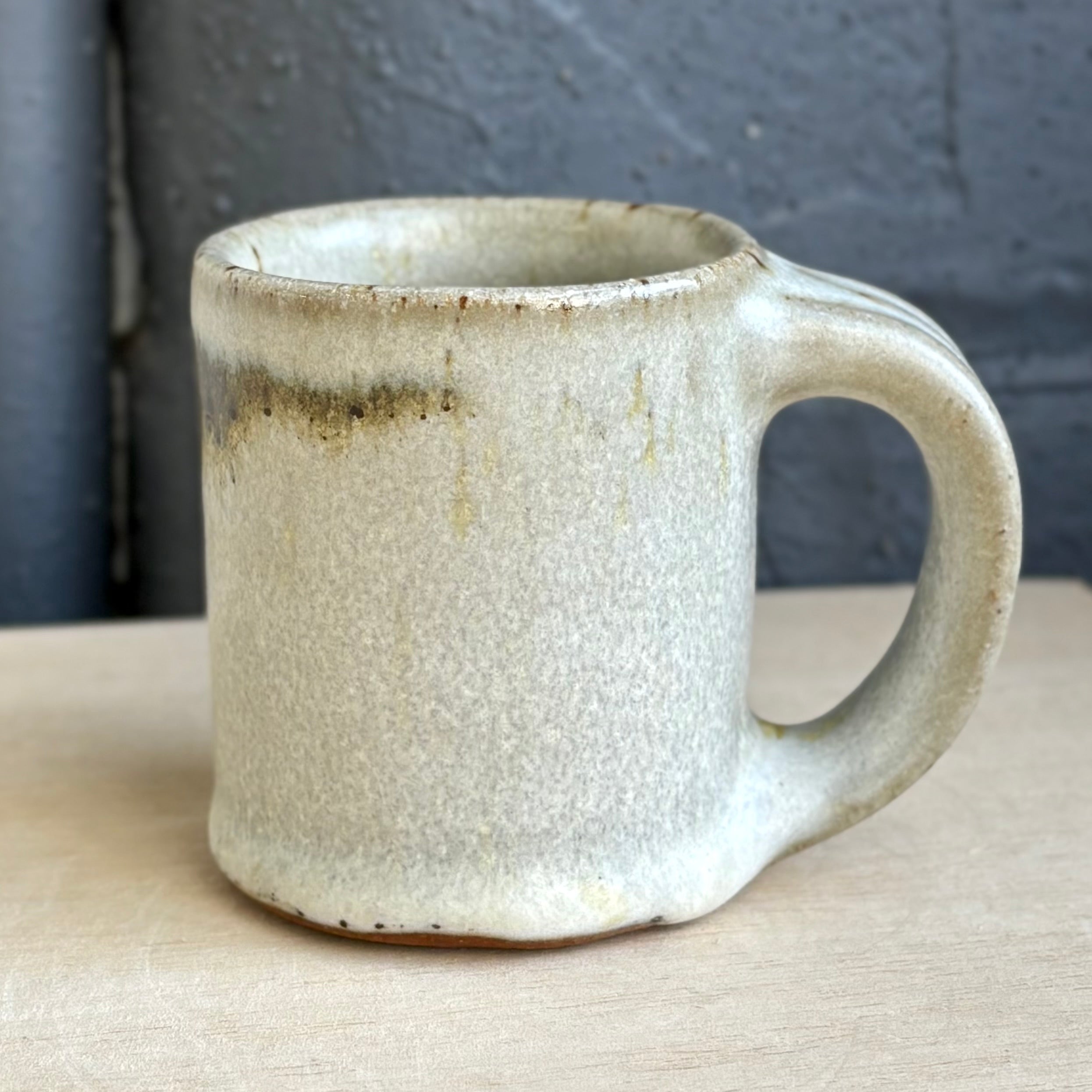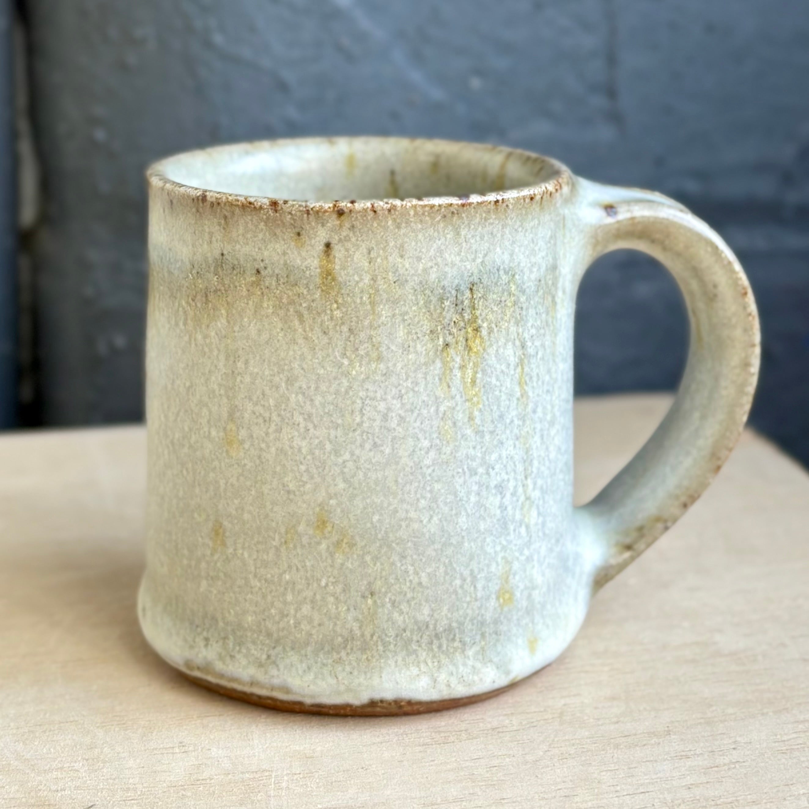 These slightly larger espresso cups by Josh Kopin are wheel-thrown and gas-fired, part of the warm and understated “Gold Drift” series. The surface features a soft cream glaze that breaks into earthy tones and golden blushes, varying beautifully from piece to piece. Comfortably weighted with a generous handle, they’re well-suited for a double shot of espresso or a small pour of coffee.