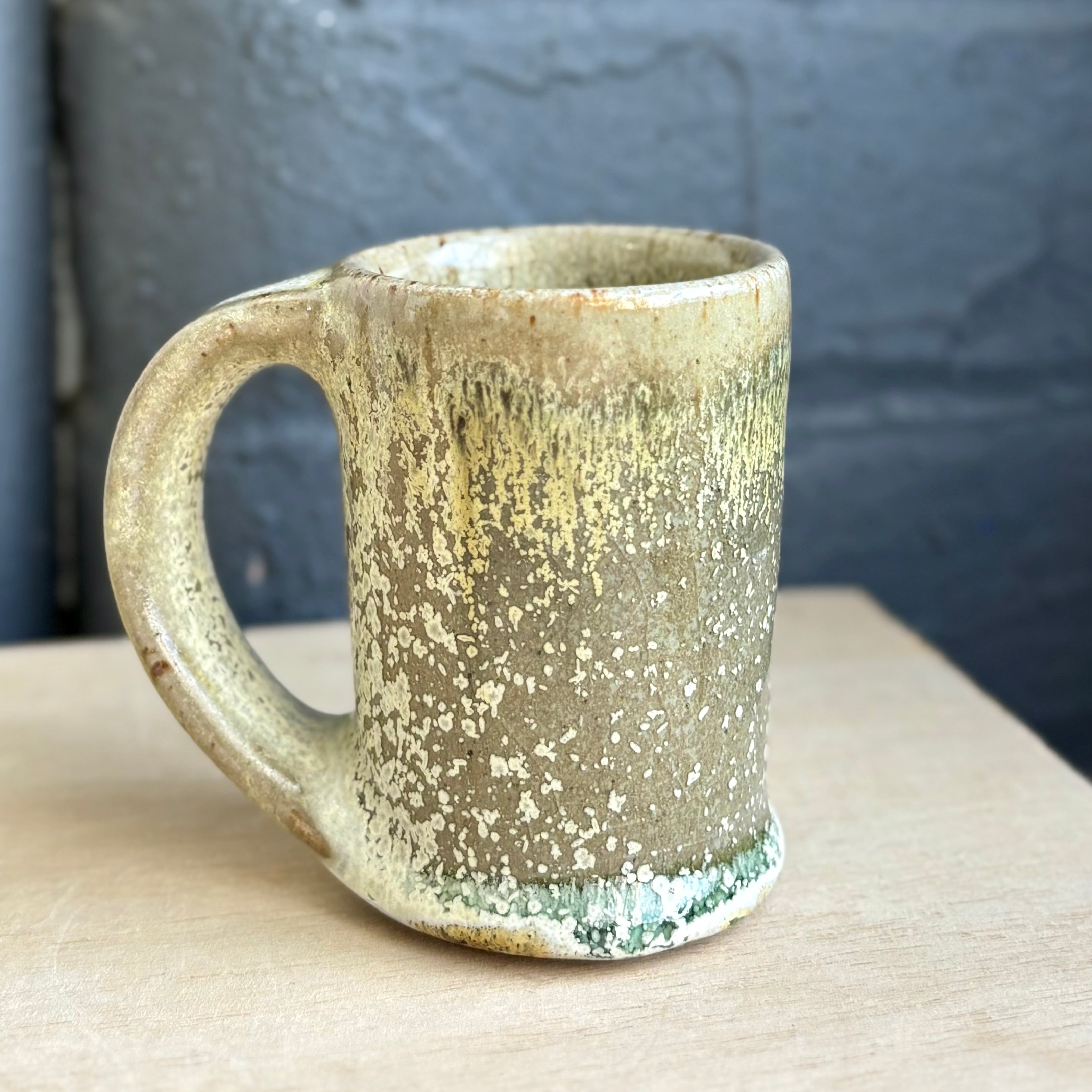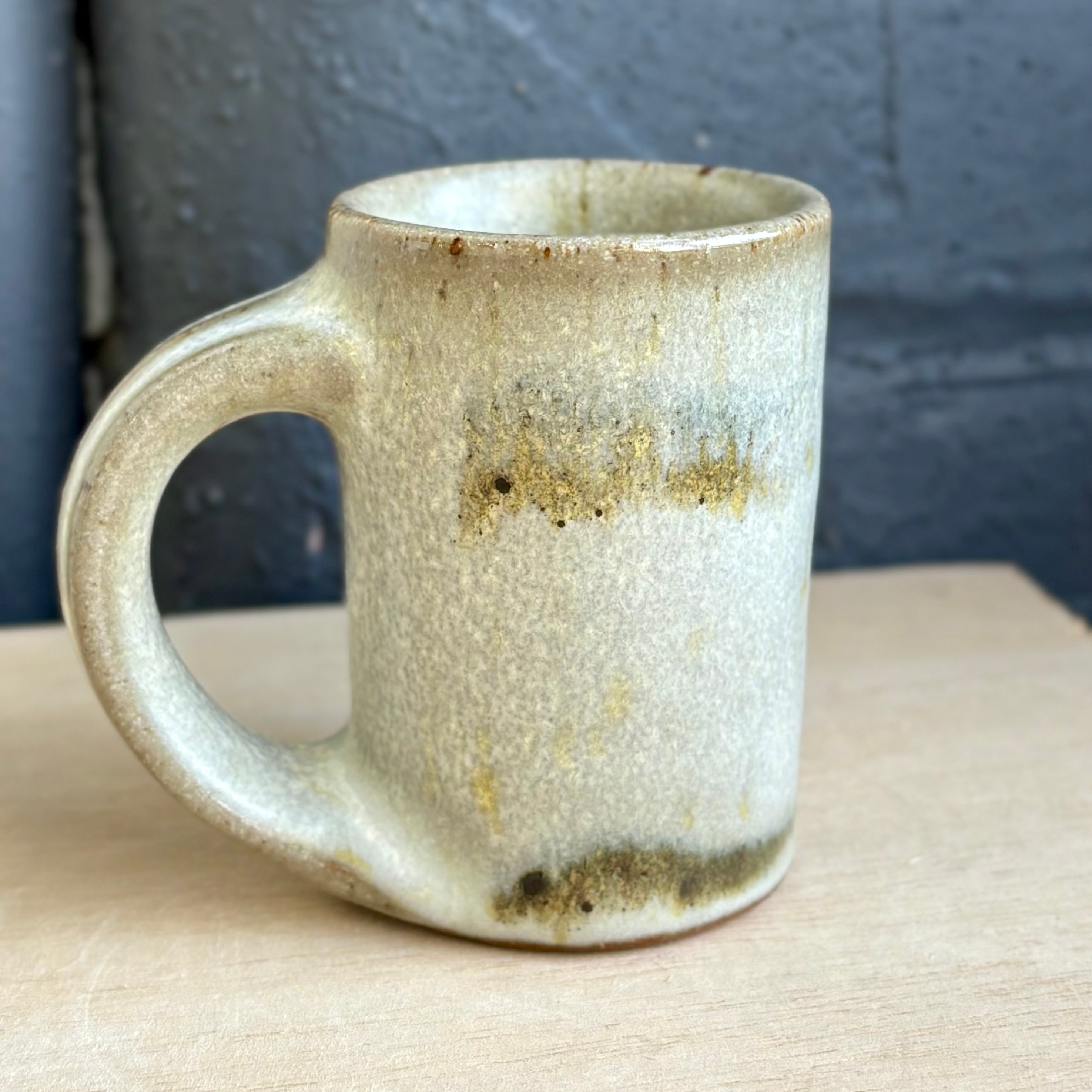 ジョシュ・コピンによるろくろ成形のラージ・エスプレッソカップ。「ゴールド・ドリフト」シリーズのひとつで、ガス窯焼成、やわらかなクリーム色の釉薬が土の表情と混ざり合い、黄金色のにじみが現れています。釉調やかたちには個体差があり、それぞれが一点もの。やや大きめのサイズで、ダブルショットのエスプレッソや少量のコーヒーにもぴったりです。