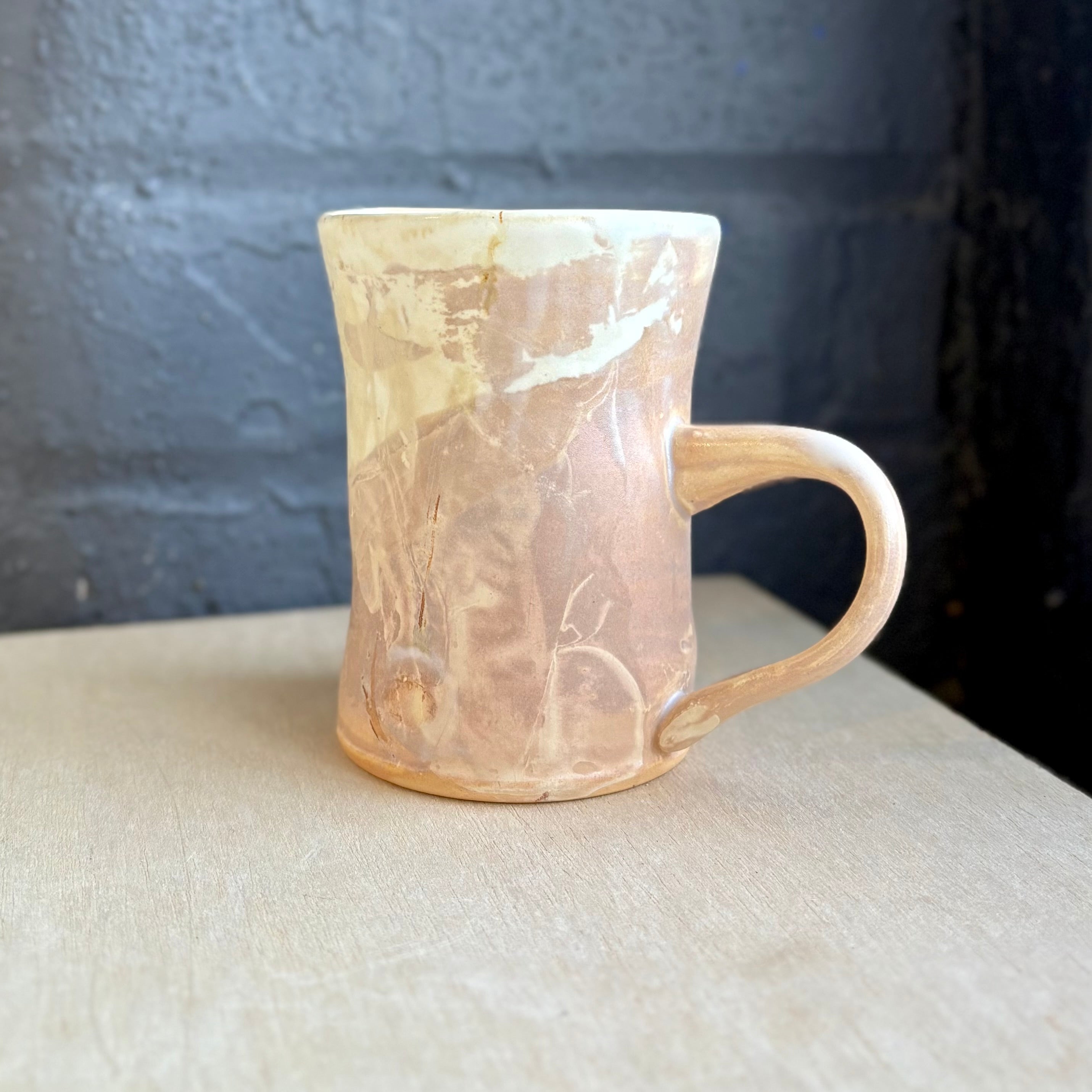 This handbuilt mug by Juli Kirk has a quiet elegance. Taller and more slender than most, its proportions lend a refined feel, while the soft vertical lines and warm surface tones reveal the rhythm of the maker’s hand. A thoughtful choice for tea, coffee, or morning reflection. Food safe, microwave safe, and dishwasher safe.