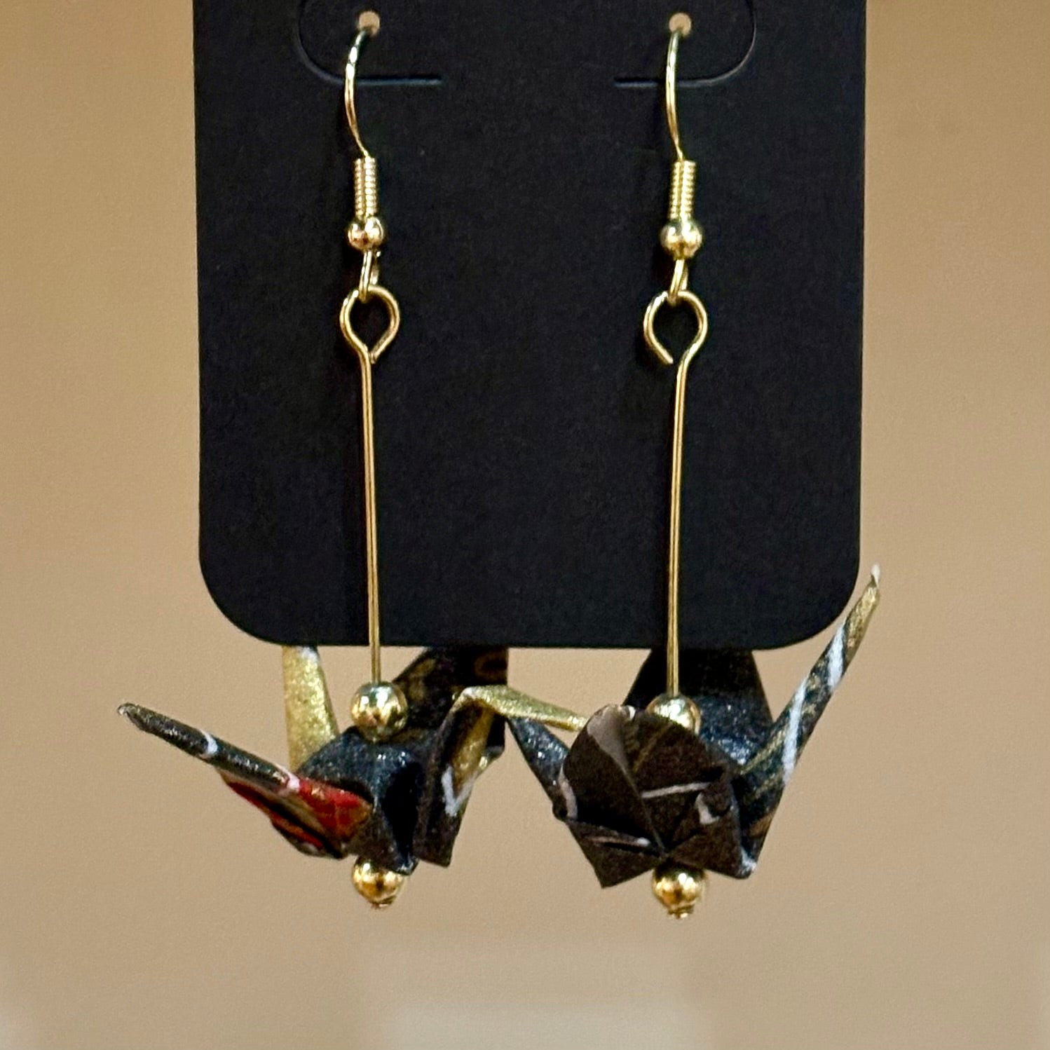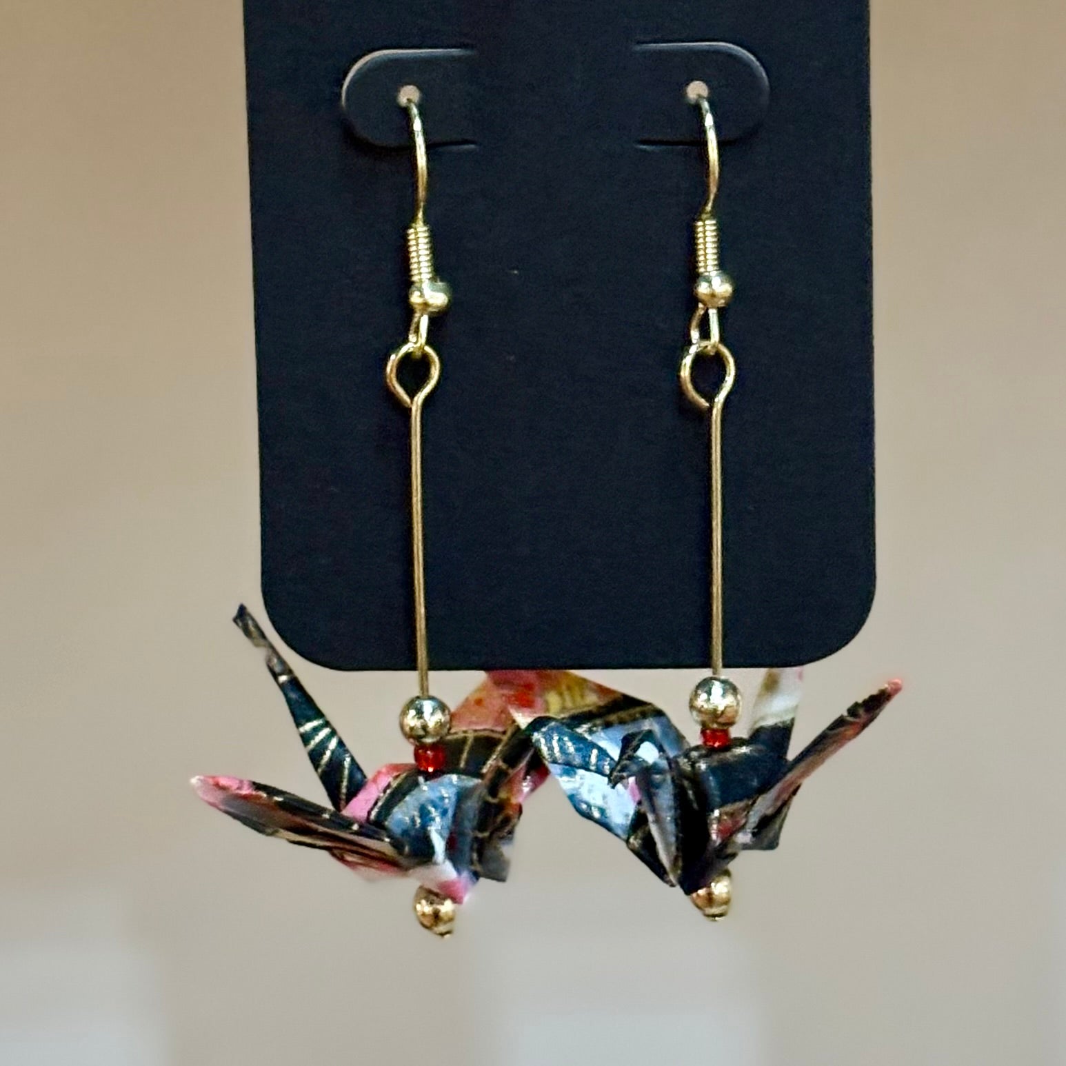 Delicate, joyful, and full of grace, these origami crane earrings are handmade by Liana Rice using traditional washi paper and glass or metal bead accents. Each pair features its own color palette and unique details—some with suspended cranes, some double-tiered, some with sea glass bases or vibrant beads. Liana, the daughter of longtime Hashi artist Akemi, carries on the spirit of care and craft with her own expressive touch. Lightweight and full of motion, they make lovely gifts or personal treasures.