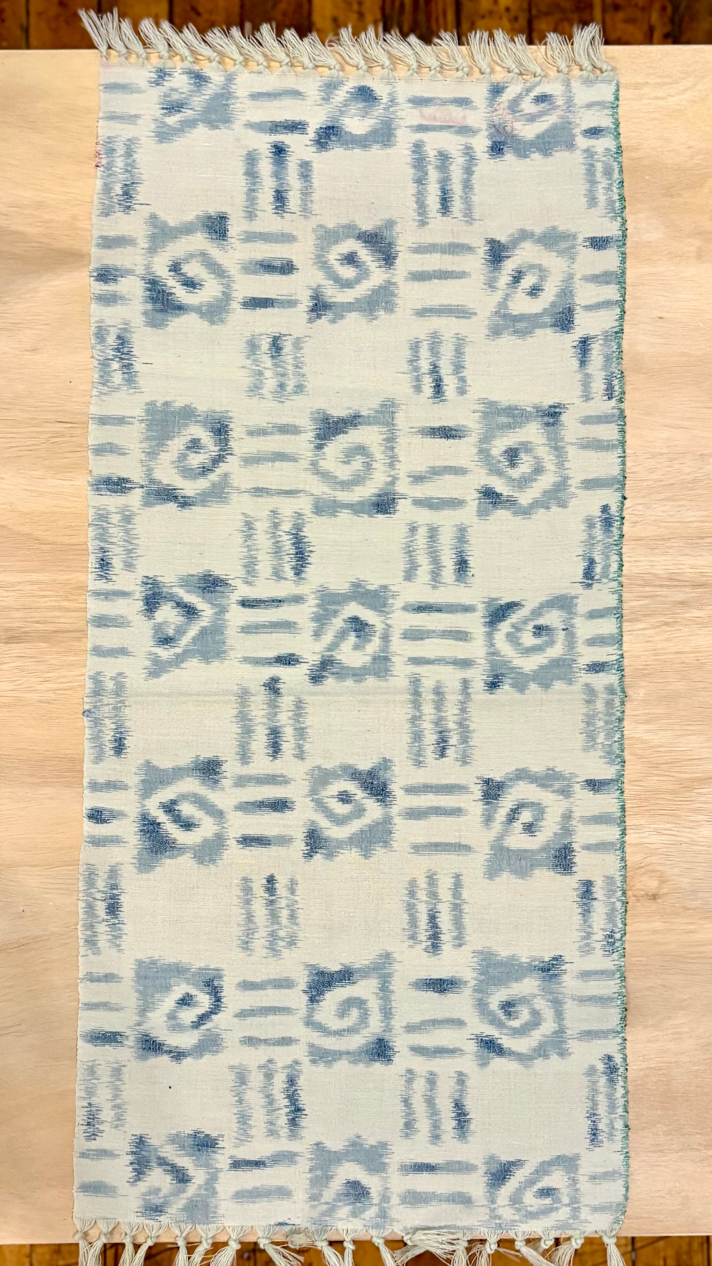 Handsewn by Sabinando from vintage kimono fabric, this mid-length table runner brings texture and tradition to any surface. Rich in tone and detail, it’s perfect as a centerpiece accent or for adding a quiet touch of elegance to your space.
