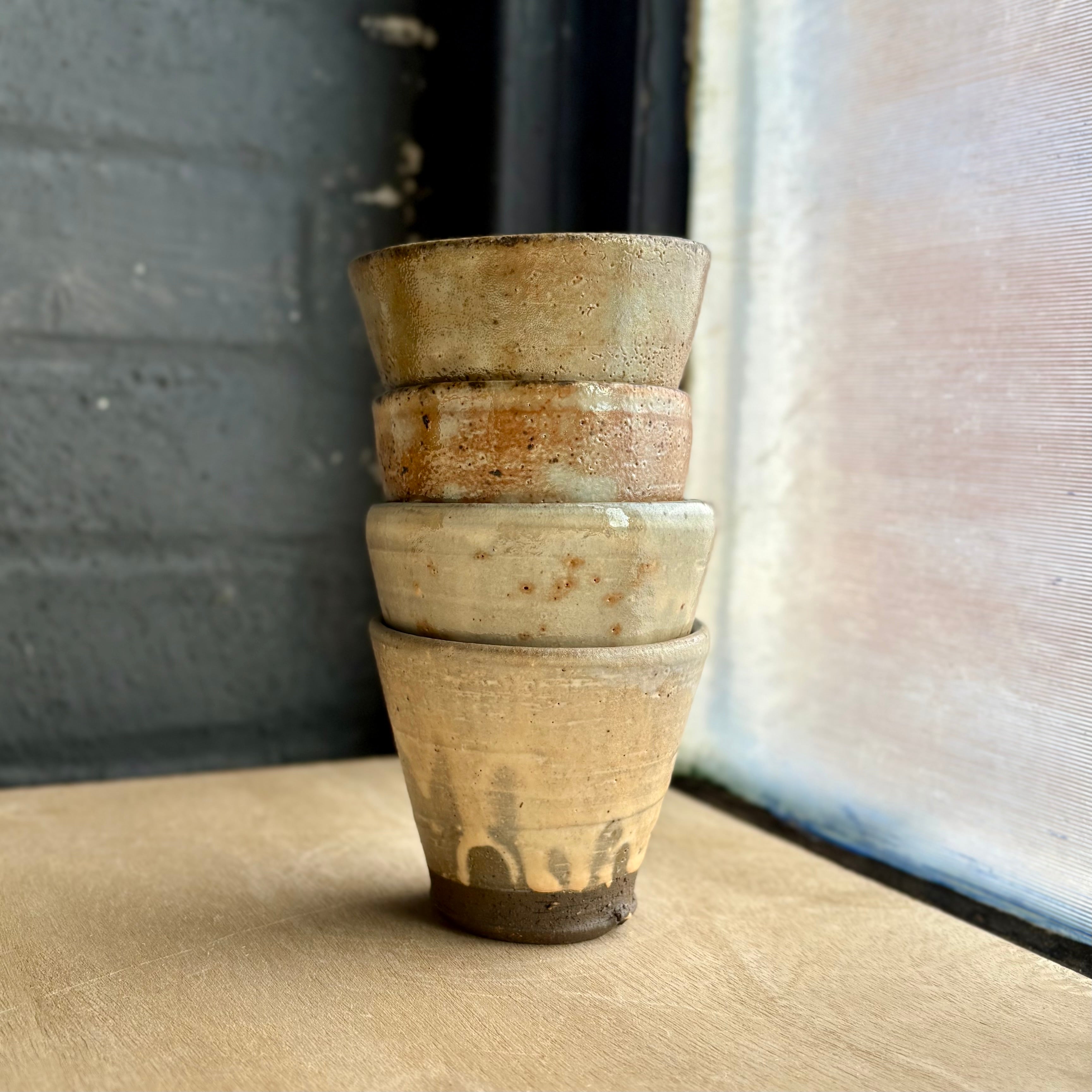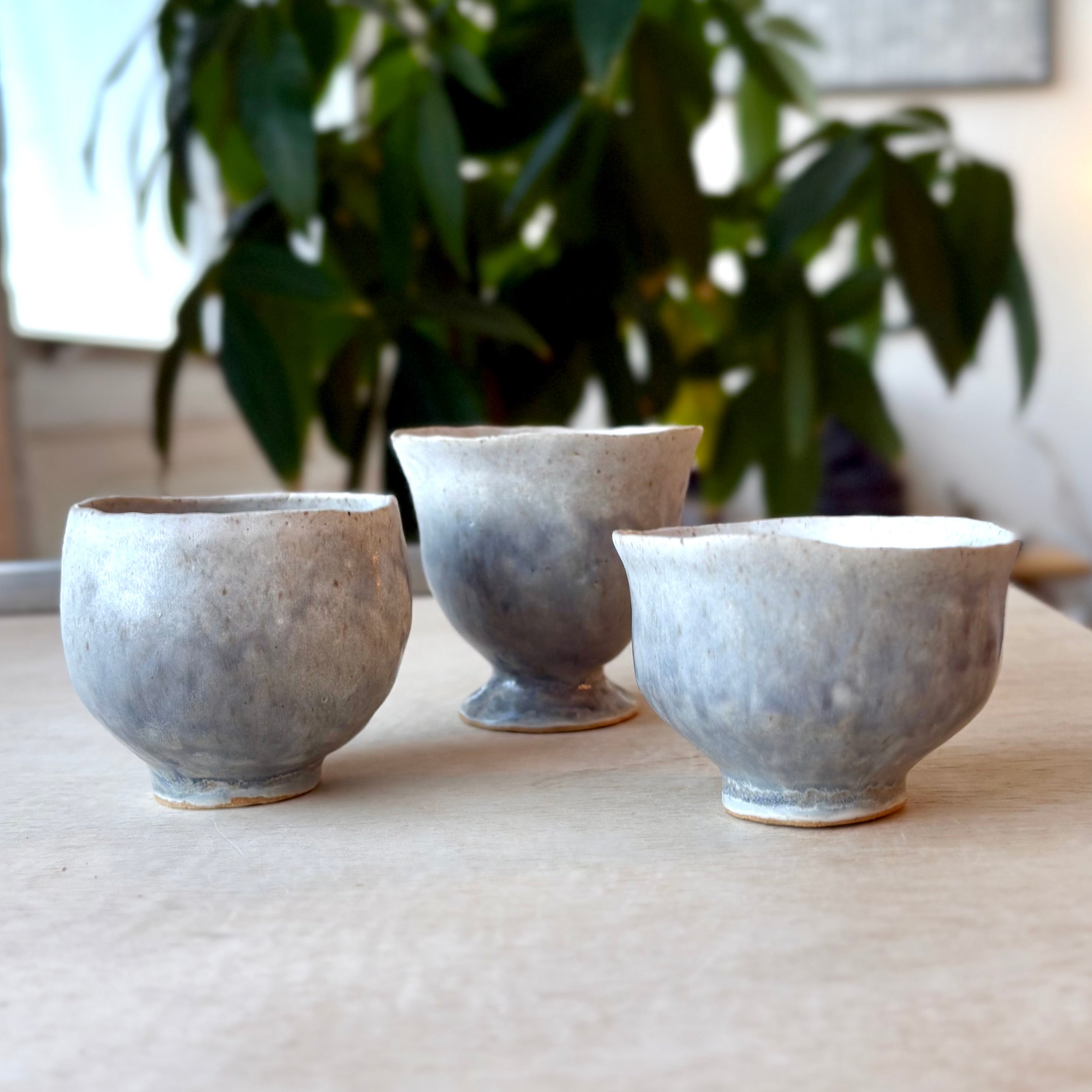Traditional and modern sake cups, perfect for enjoying warm or cold sake or small servings of any beverage. Each guinomi is uniquely glazed and shaped, making it a small but striking piece of art.