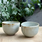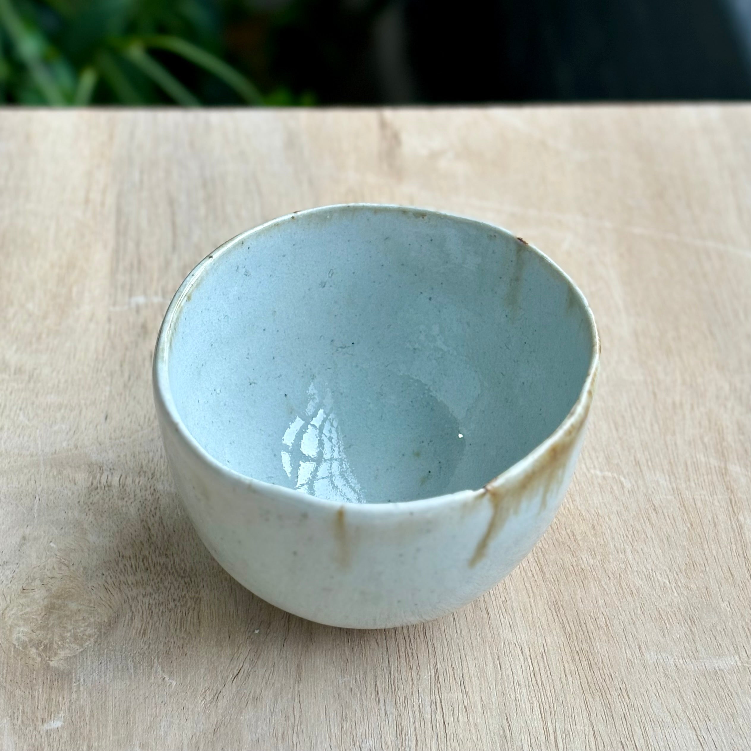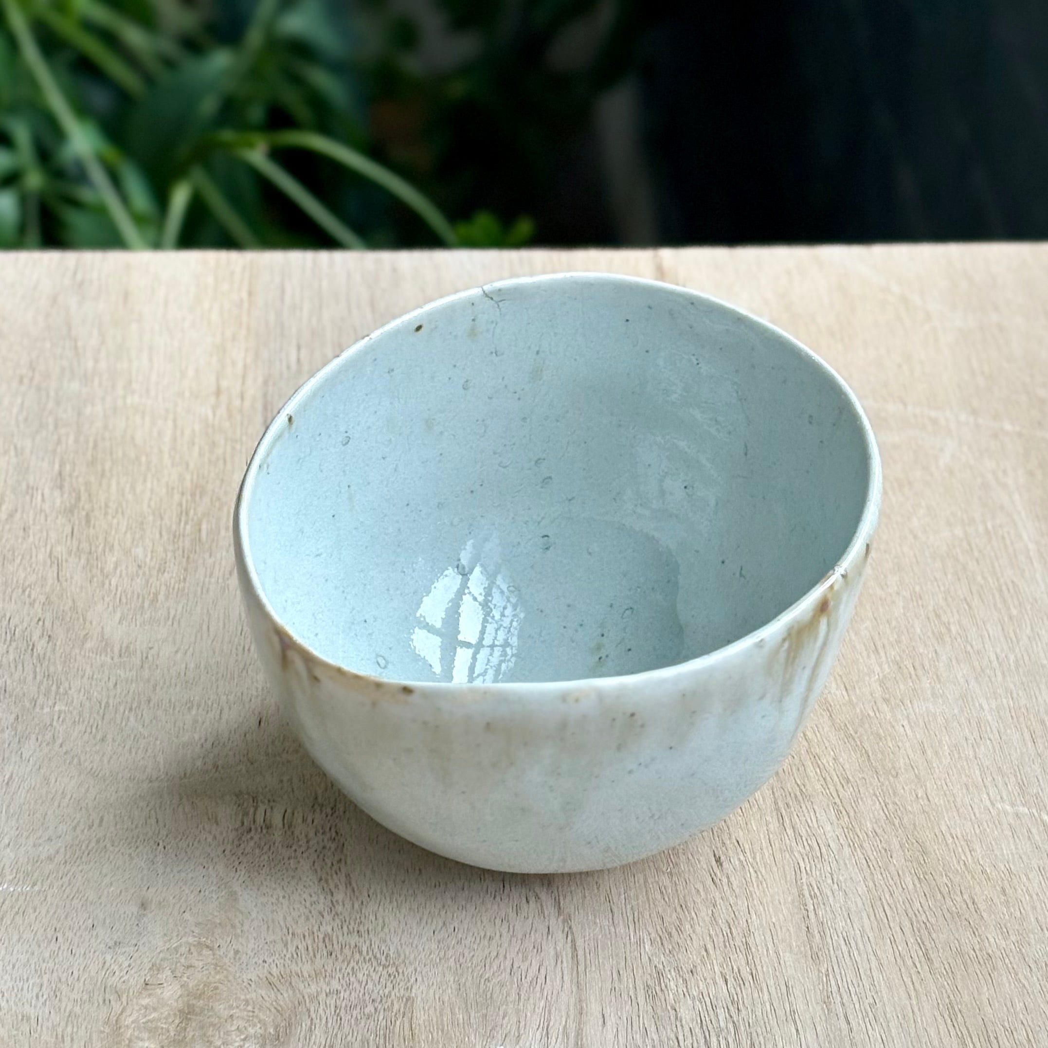 This small bowl by Andy Vlock is made from porcelain and gas-fired with an ash glaze that settles softly across the surface. Subtle variations in tone and texture emerge through the firing, giving the bowl a quiet, lived-in presence. The rounded form feels intimate in the hand and well balanced. Suitable for everyday use as a small serving bowl for condiments, fruit, or sweets, it would also make a beautiful small matcha or tea bowl.