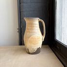 バーモント州の陶芸家 Silene DeCiucies によって手作りされた背の高いピッチャー。薪窯焼成によって生まれる力強さと豊かな表情が、スリップと長石化粧の穏やかな色合いと重なり合い、見る角度によってさまざまな景色を映し出します。高さ約24cm、口径約8cm、最も広い部分約13cm、足径約10cm。水やジュースを注ぐ器として、また花器としても活躍します。丈夫でありながら優雅な佇まい。食器用、電子レンジ対応、食洗機対応。